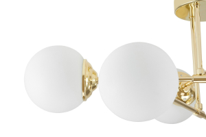 Допускается отличие страны-изготовителя, указанной в характеристиках. Линии производства могут находиться в нескольких государствах. Это не влияет на качество изготовления товара: все заводы данного бренда работают по общим стандартам, а готовые изделия проходят соответствующий контроль.Польша Коллекция Fino ЦветЦвет арматуры золотой Цвет Золото Материал арматуры Металл Цвет плафона Белый Материал плафона Стекло РазмерыВысота (мм) 350 Диаметр (мм) 750 Диаметр абажура-плафона 130 ЭлектрикаКоличество ламп (шт) 6 Тип лампы все типы лампочек Лампочки в комплекте нет Мощность лампы (Вт) 40 Общая мощность (Вт) 240 Напряжение (В) 220 Дополнительная информацияСтепень защиты (IP) IP20 Вес (Кг) 4,5 -