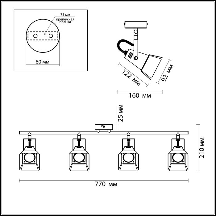 Допускается отличие страны-изготовителя, указанной в характеристиках. Линии производства могут находиться в нескольких государствах. Это не влияет на качество изготовления товара: все заводы данного бренда работают по общим стандартам, а готовые изделия проходят соответствующий контроль.Италия Коллекция Techno Pro ЦветЦвет арматуры Белый Цвет Белый Материал арматуры Металл Материал плафона Металл РазмерыВысота (мм) 210 Длина (мм) 770 Ширина (мм) 160 ЭлектрикаКоличество ламп (шт) 4 Цоколь GU10 Мощность лампы (Вт) 50 Напряжение (В) 220 Дополнительная информацияСтепень защиты (IP) IP20 -