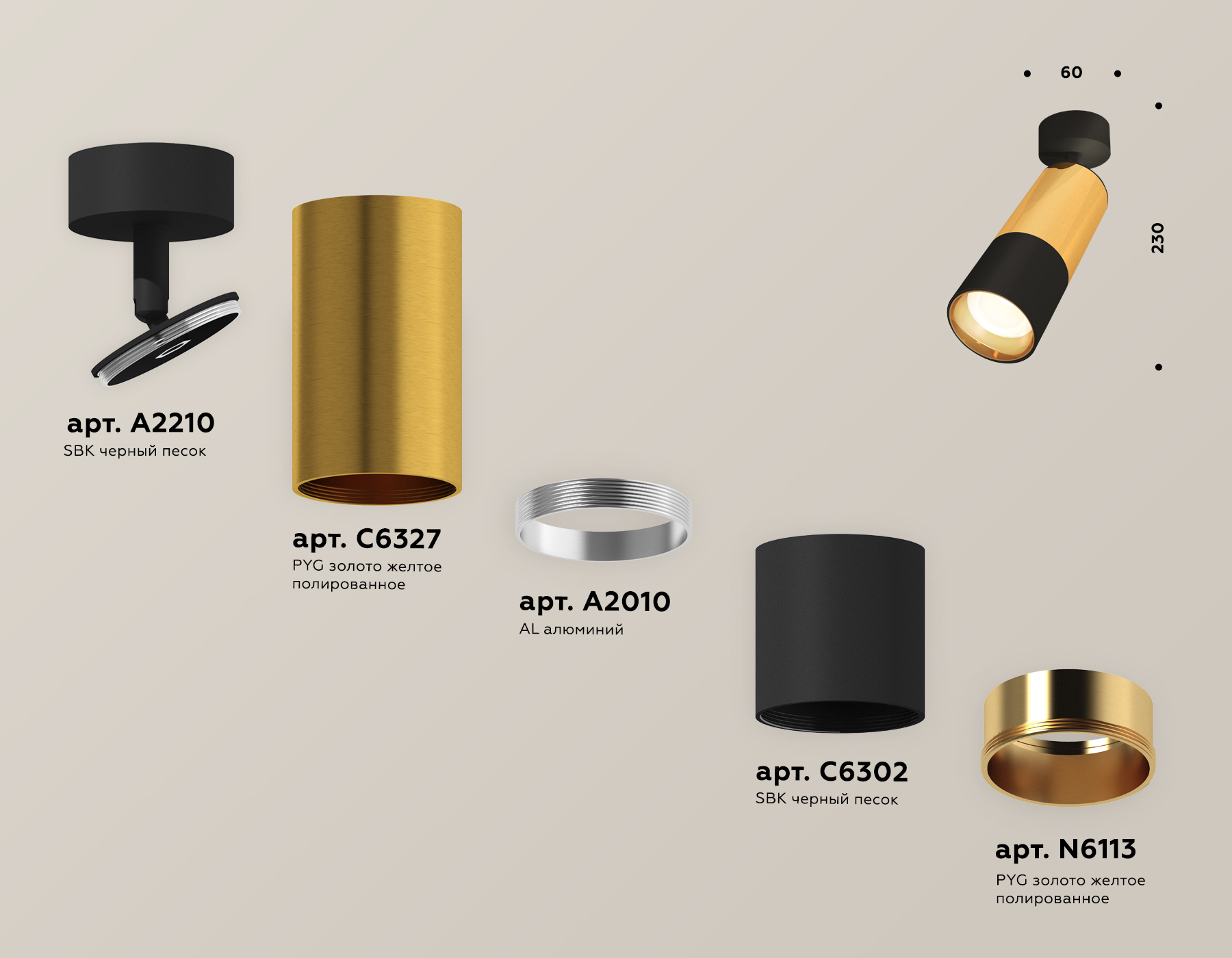 Допускается отличие страны-изготовителя, указанной в характеристиках. Линии производства могут находиться в нескольких государствах. Это не влияет на качество изготовления товара: все заводы данного бренда работают по общим стандартам, а готовые изделия проходят соответствующий контроль.Россия Коллекция Techno ЦветЦвет арматуры черный песок, золото желтое полированное Цвет Желтый Материал арматуры Металл Цвет декора золото желтое полированное Материал декора Металл РазмерыВысота (мм) 230 Диаметр (мм) 60 Ширина (мм) 60 ЭлектрикаЦоколь GU5.3 Тип лампы Светодиодная Мощность лампы (Вт) 10 Напряжение (В) 220 Площадь освещения 5 Дополнительная информацияСтепень защиты (IP) IP20 Техническая оссобеность Поворотный Тип подвеса На штанге -