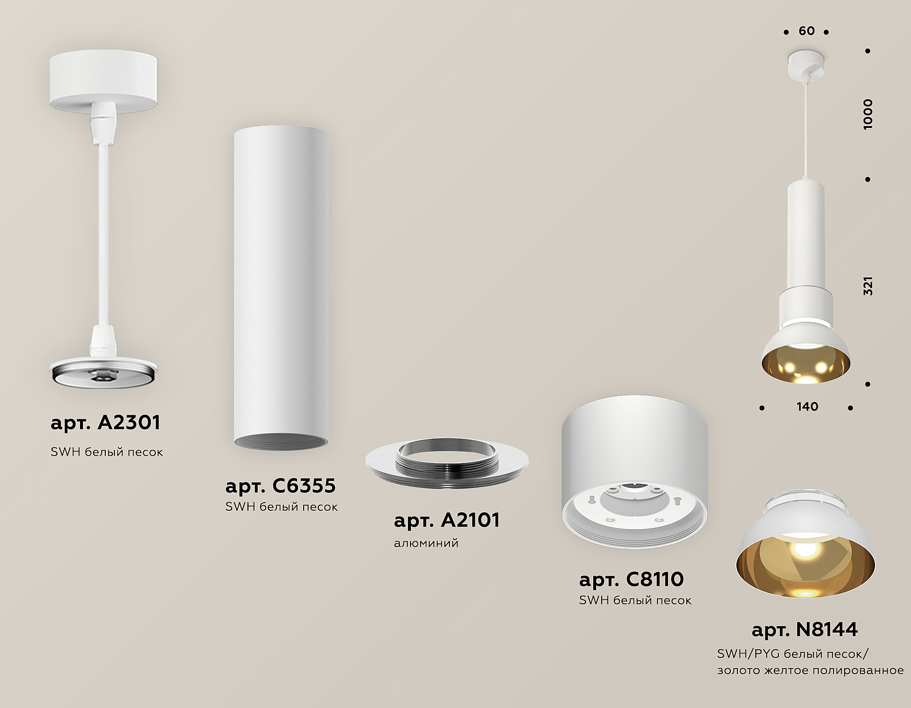| Цвет арматуры | Прозрачный, Белый песок, золото желтое полированное |