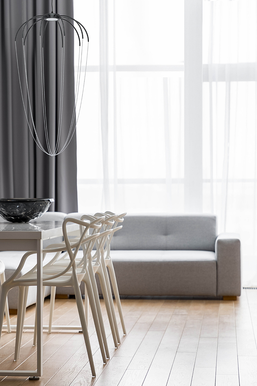 Мягкий минимализм, где свет и декор объединяются в одном арт-объекте.Долговечное покрытие обеспечено технологией порошкового окрашивания. Оригинальные декоративные цепочки представлены в двух трендовых оттенках - хром и золото. Светильник идеален для зональной подсветки современных интерьеров.