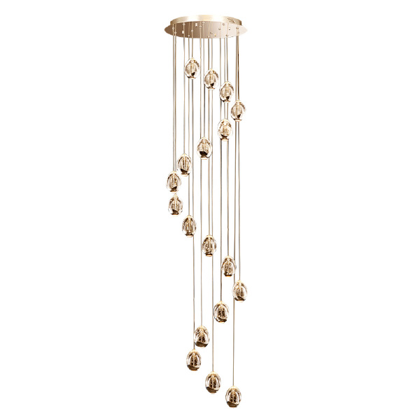 Допускается отличие страны-изготовителя, указанной в характеристиках. Линии производства могут находиться в нескольких государствах. Это не влияет на качество изготовления товара: все заводы данного бренда работают по общим стандартам, а готовые изделия проходят соответствующий контроль.Китай Коллекция Terrene ЦветЦвет арматуры золотой Цвет Золото Материал арматуры Металл Цвет плафона золотой Материал плафона Стекло РазмерыВысота (мм) 2500 Диаметр (мм) 600 Ширина (мм) 600 ЭлектрикаКоличество ламп (шт) 18 Цоколь LED Тип лампы Светодиодная Мощность лампы (Вт) 4.8 -