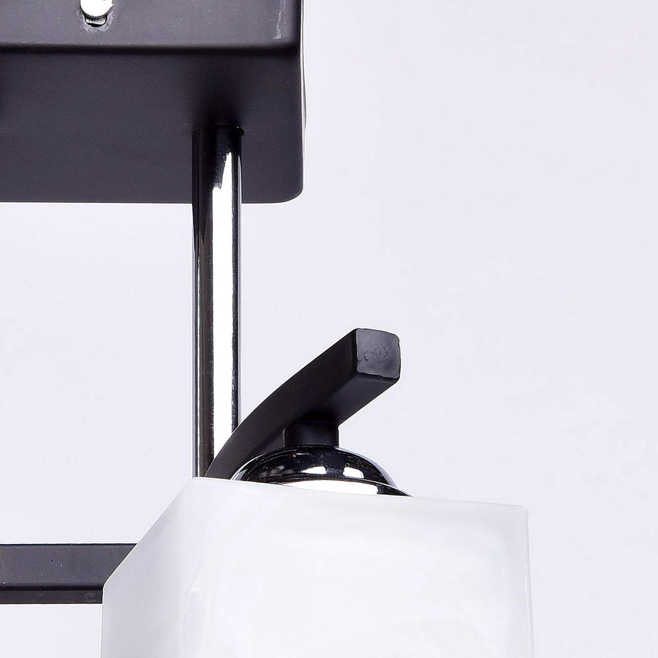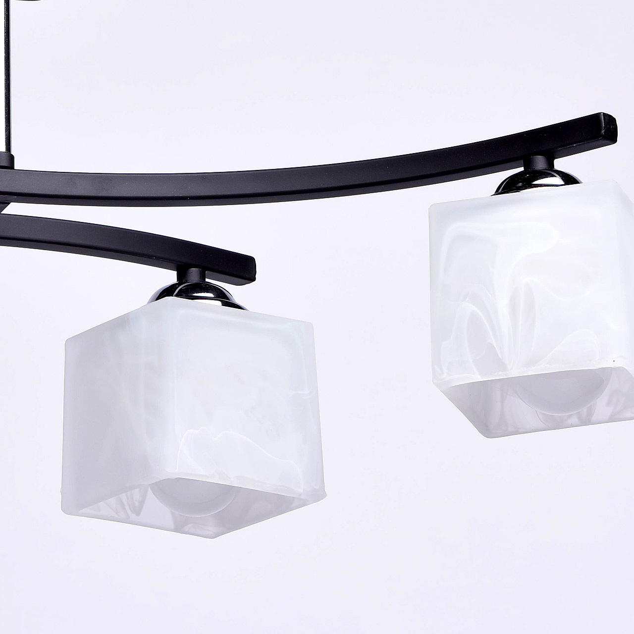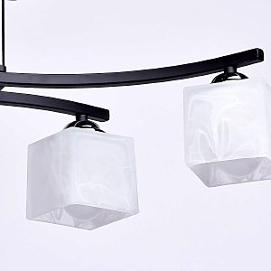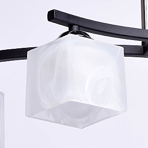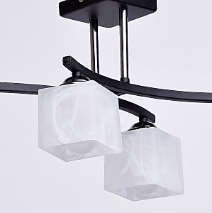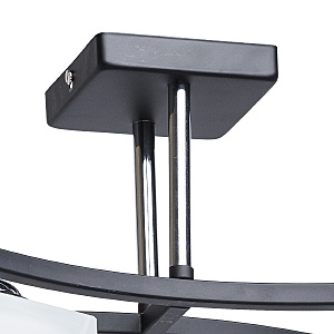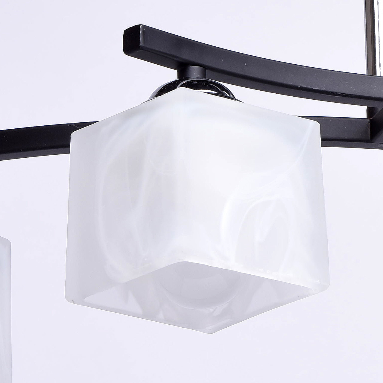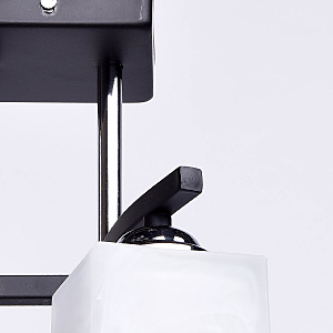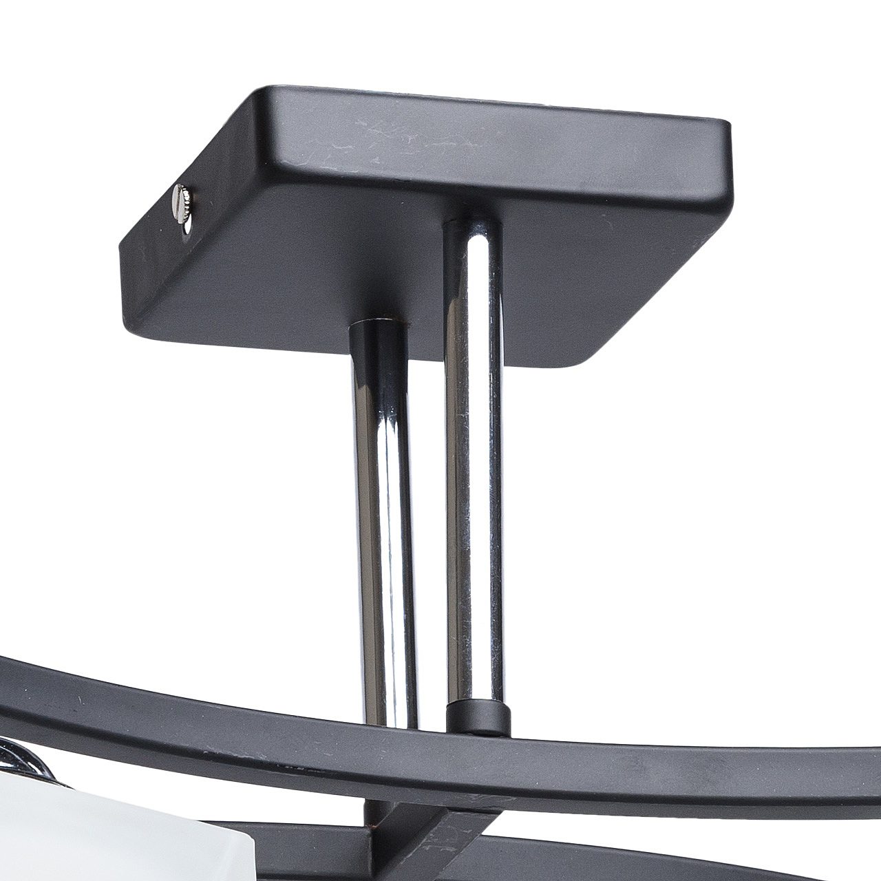 Крашеное металлическое основание черного цвета и хрома, плафоны из стекла