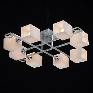 Конструкция люстры не имеет основного стержня, не перегружена и воздушна.Компактная высота светильника идеальна для стандартной высоты потолка.Световой поток защищен плафонами, создает мягкое освещениеРазличные варианты цветового исполнения облегчают выбор.