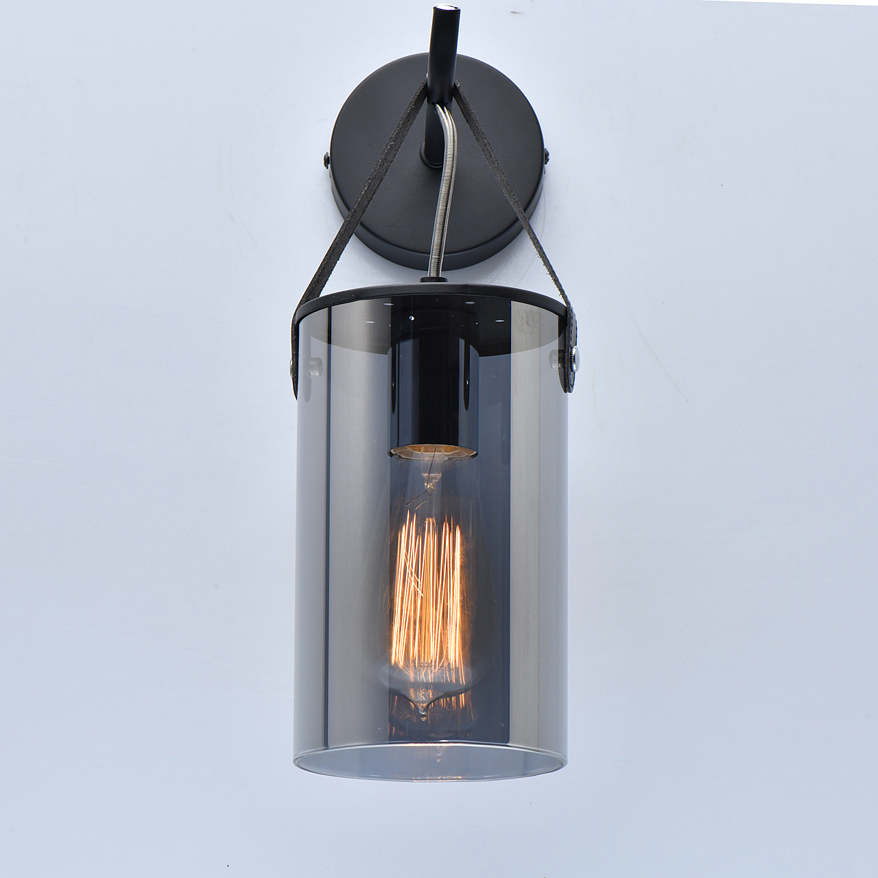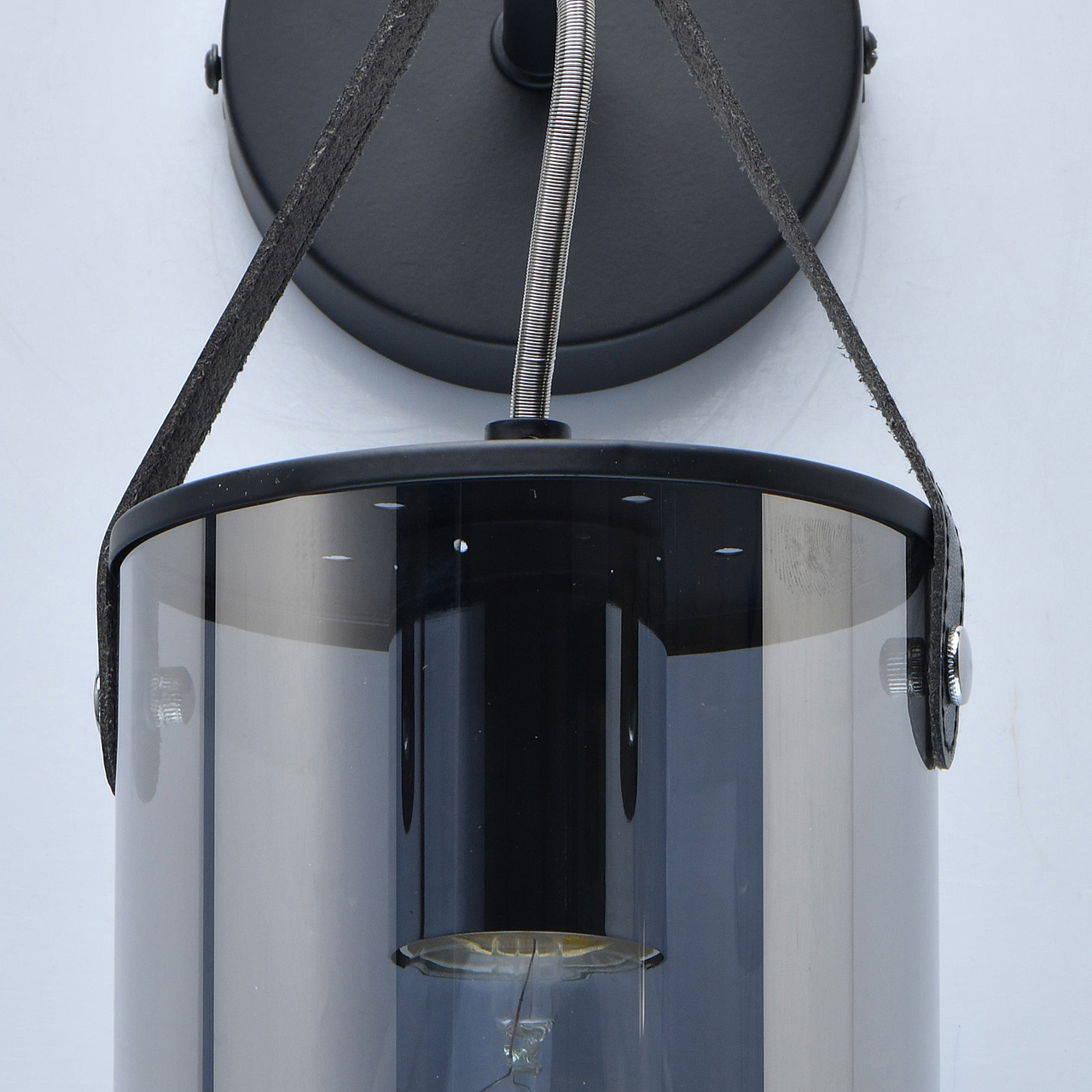 Притягательный дымчатый цвет является трендом в дизайне интерьеров.Необычное крепление плафона на кожаном ремешкеПолная семья для общего и зонального освещения.