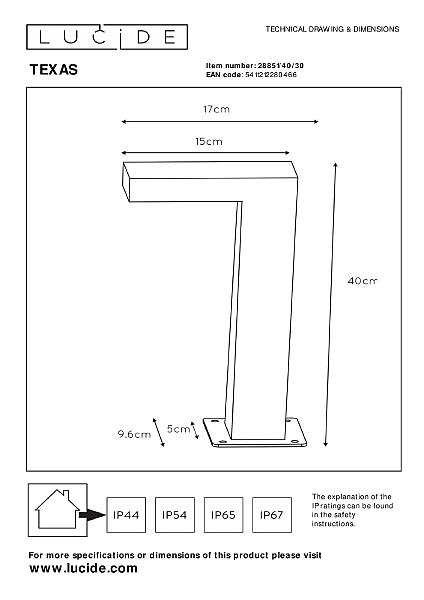 Допускается отличие страны-изготовителя, указанной в характеристиках. Линии производства могут находиться в нескольких государствах. Это не влияет на качество изготовления товара: все заводы данного бренда работают по общим стандартам, а готовые изделия проходят соответствующий контроль.Бельгия Коллекция Texas ЦветЦвет арматуры Черный Цвет Черный Материал арматуры Алюминий РазмерыВысота (мм) 400 Длина (мм) 150 Ширина (мм) 60 ЭлектрикаКоличество ламп (шт) 1 Цоколь LED Лампочки в комплекте Лампы в комплекте Мощность лампы (Вт) 6 Световой поток 230 Цветовая температура теплый (3000k) Дополнительная информацияСтепень защиты (IP) IP54 Диммирование Нет Техническая оссобеность Полностью светодиодная -
