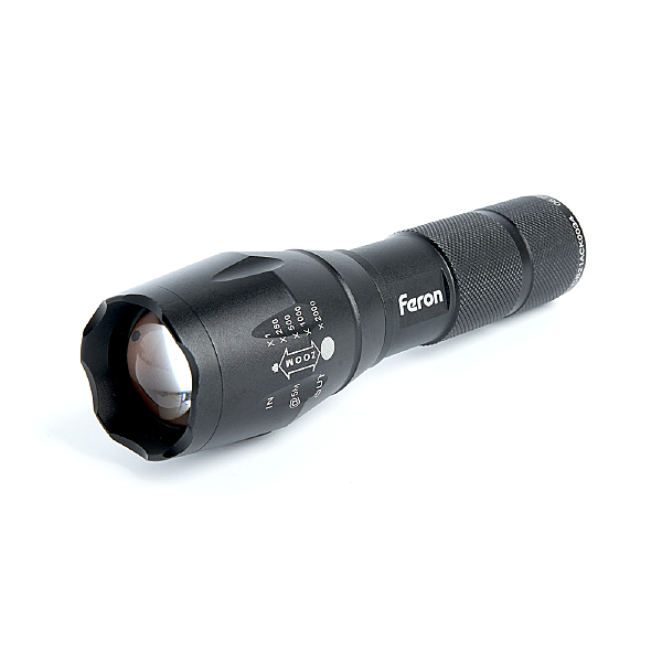 Фонарь с аккумулятором FERON TH2400 переносной , 1LED IP44, аккумулятор 3,7/2000mAh/Li-ion, количество режимов 5, время зарядки 2 часа, время работы 2 часа, цвет черный, 145*40*35мм