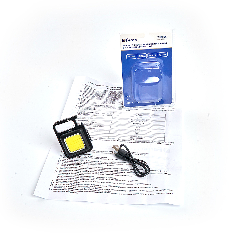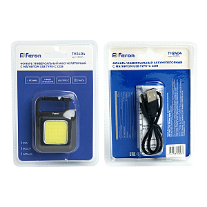 Фонарь с аккумулятором FERON TH2404 фонарь карманный, 1LED IP65, аккумулятор 3,7/500mAh/Li-ion, количество режимов 4, время зарядки 1 час, время работы 2 часа, цвет черный, 43*22*60мм
