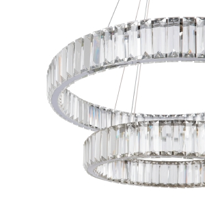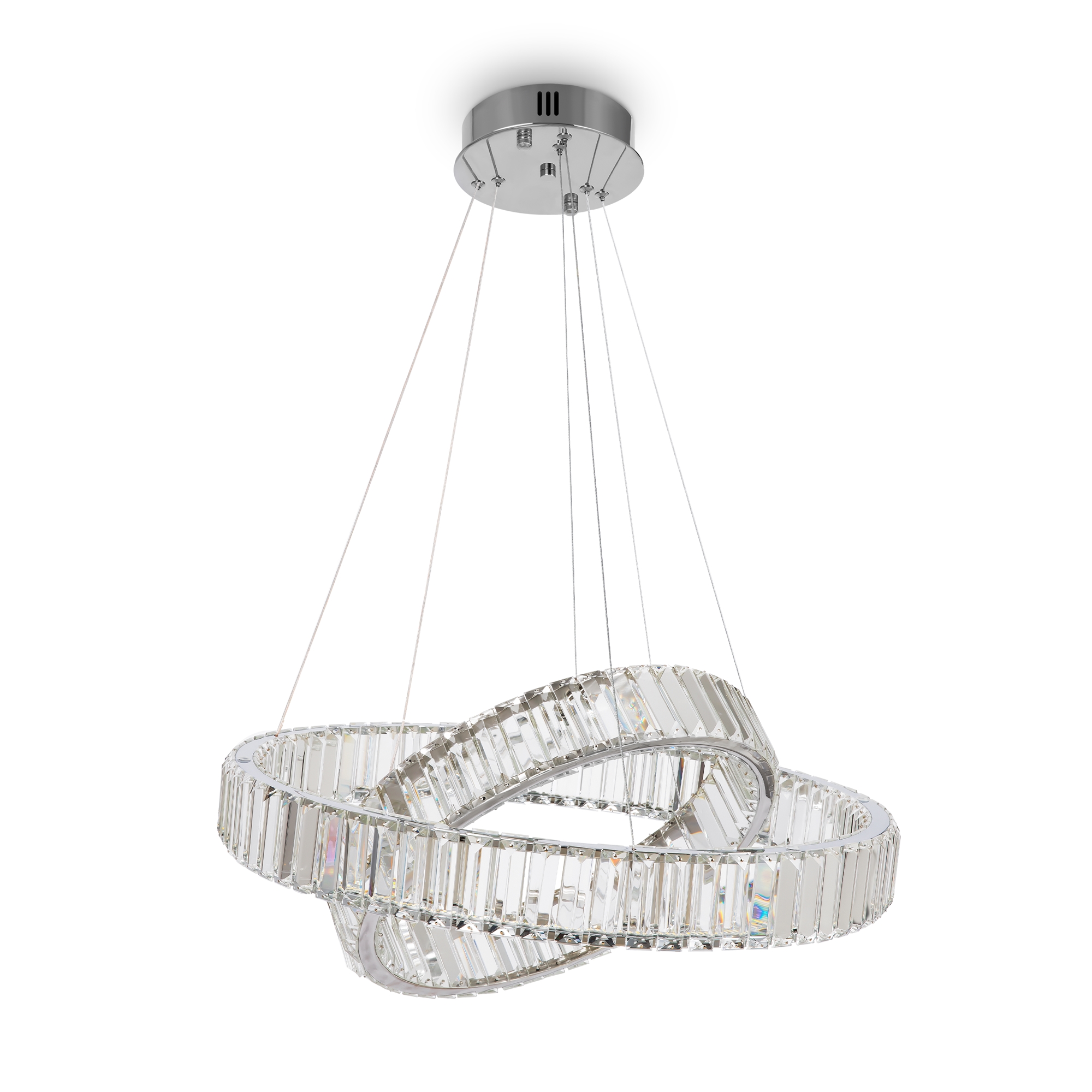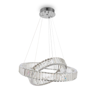 Металлическая арматура в цвете латунь и хром.Хрустальные декоративные кольца с геометричными гранями. LED-источник света. Регулировка цветовой температуры (3000-4000-5000K)и яркости 4G-dimming при помощи пульта (в комплекте).