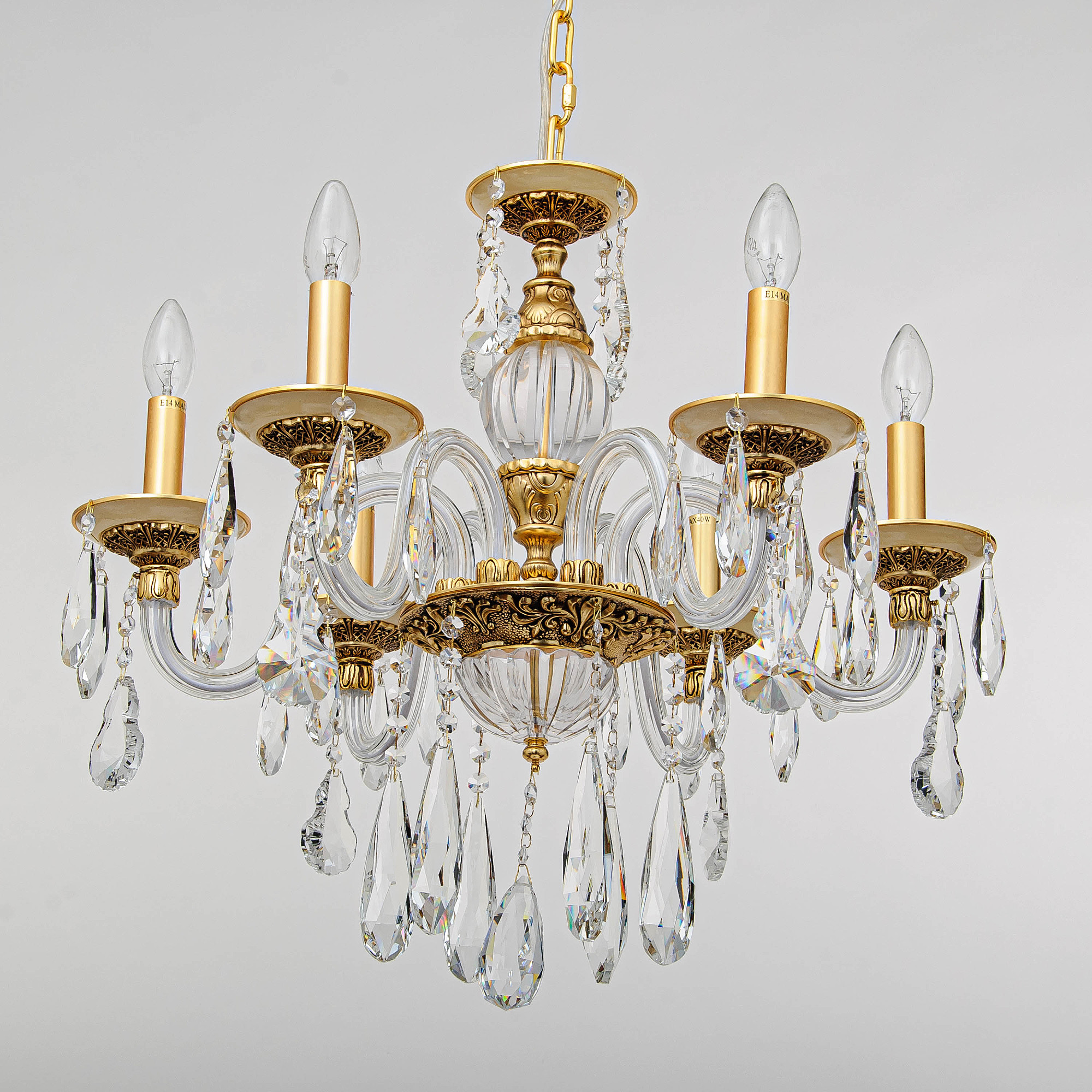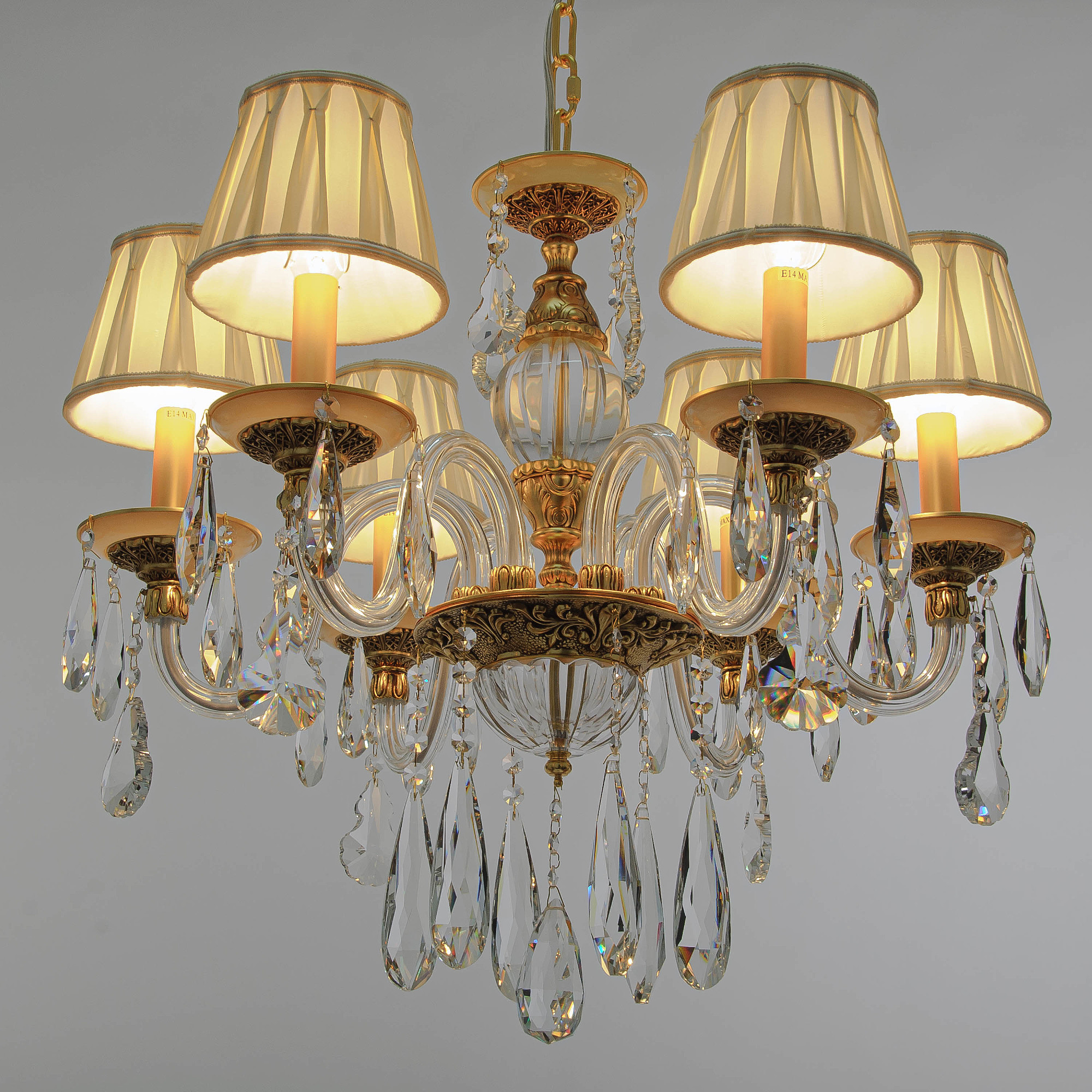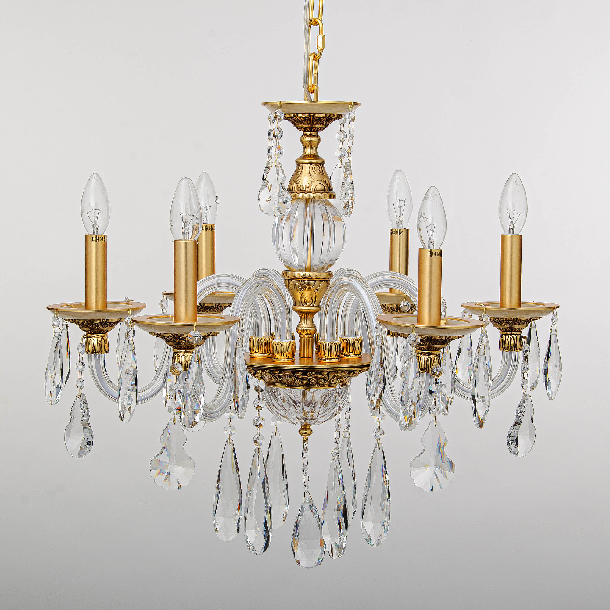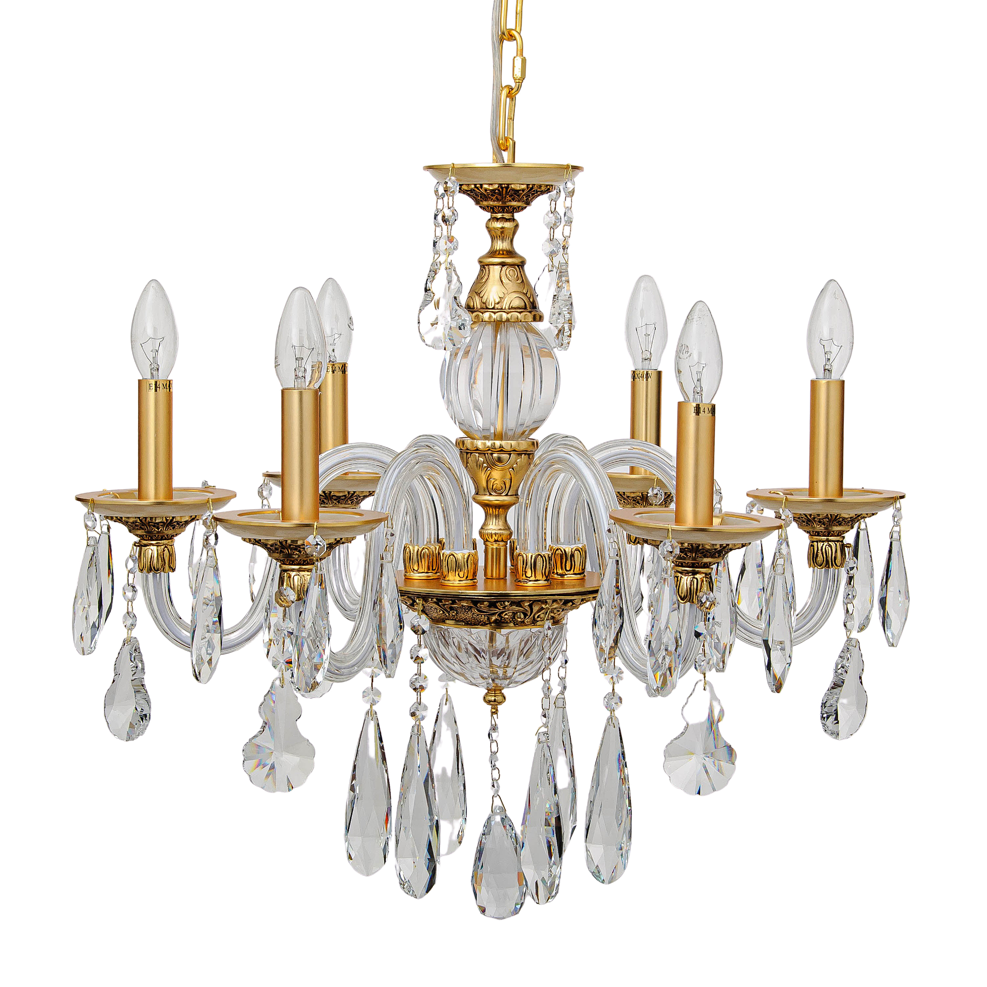 Допускается отличие страны-изготовителя, указанной в характеристиках. Линии производства могут находиться в нескольких государствах. Это не влияет на качество изготовления товара: все заводы данного бренда работают по общим стандартам, а готовые изделия проходят соответствующий контроль.Германия Коллекция Tina ЦветЦвет арматуры Золото Цвет Золото Материал арматуры Металл РазмерыВысота (мм) 500 Диаметр (мм) 500 Ширина (мм) 500 ЭлектрикаКоличество ламп (шт) 6 Цоколь E14 Тип лампы Светодиодная, Накаливания Мощность лампы (Вт) 40 Напряжение (В) 220 Площадь освещения 15 Дополнительная информацияСпособ крепления Крюк Степень защиты (IP) IP20 Место установки на потолок Тип подвеса На цепи -
