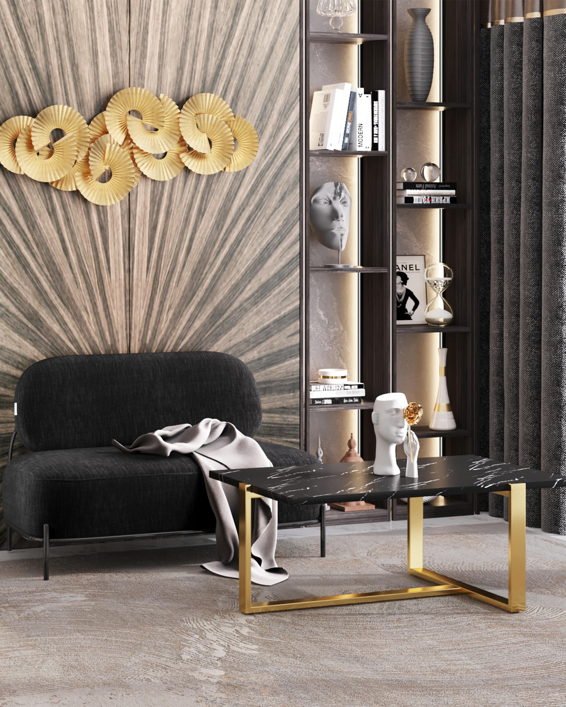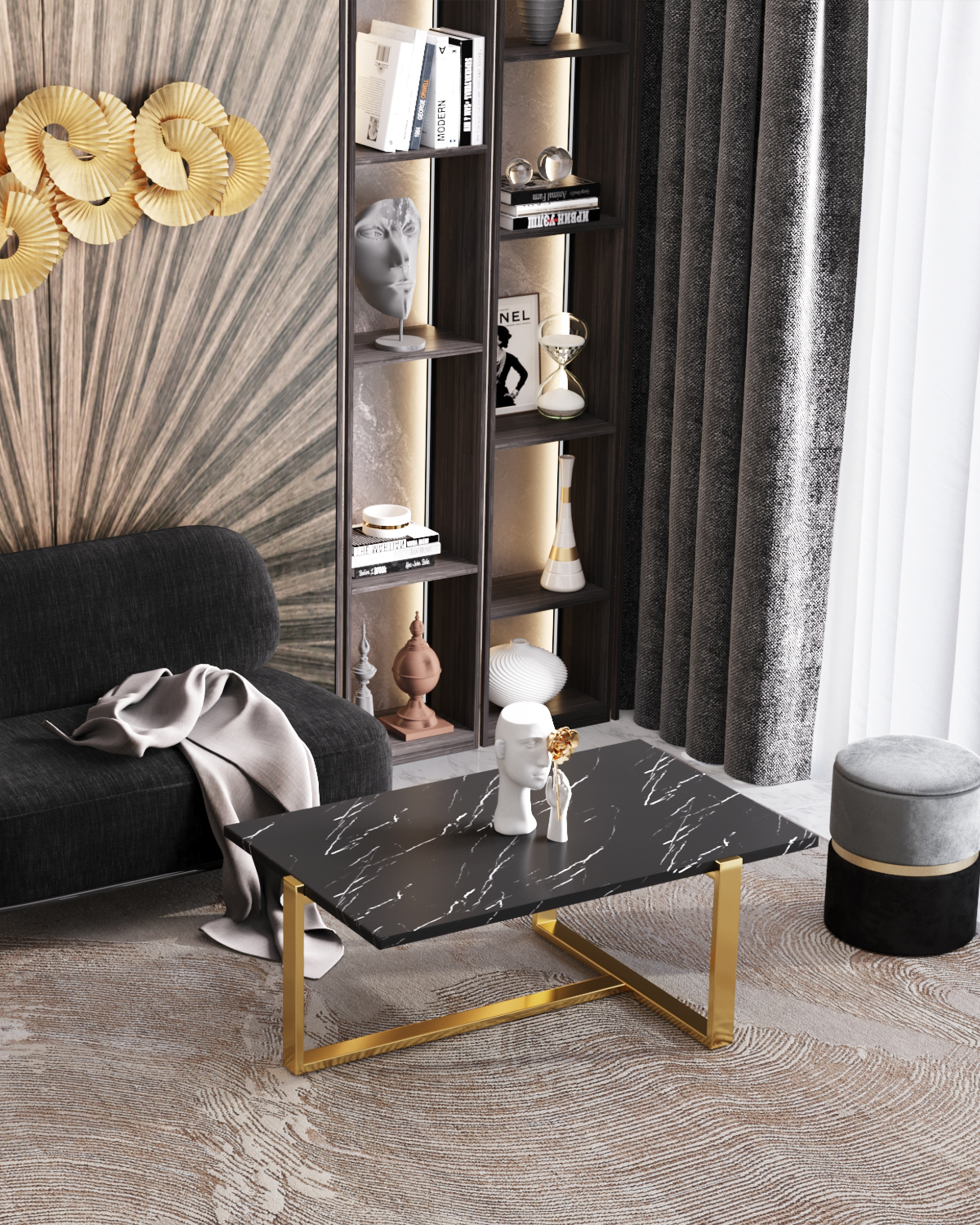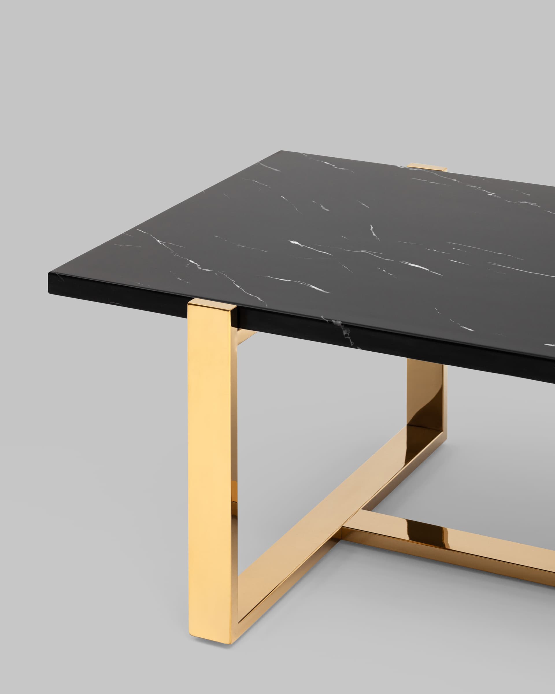 Журнальный столик Тоби 109*66 черный мрамор каркас нержавеющая сталь золото