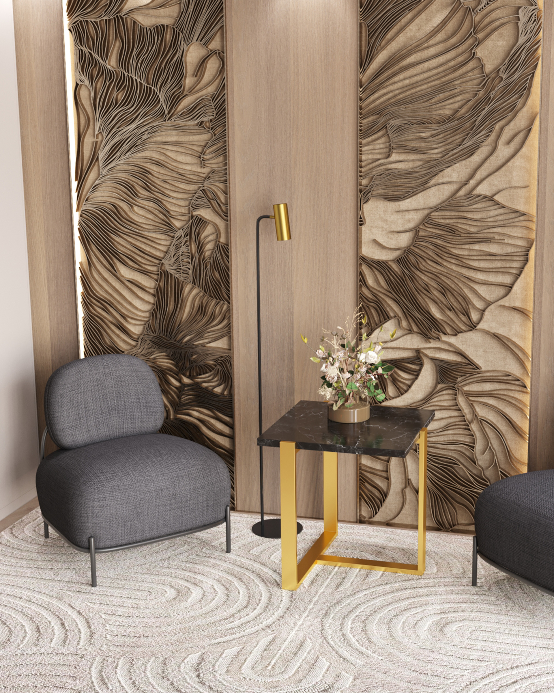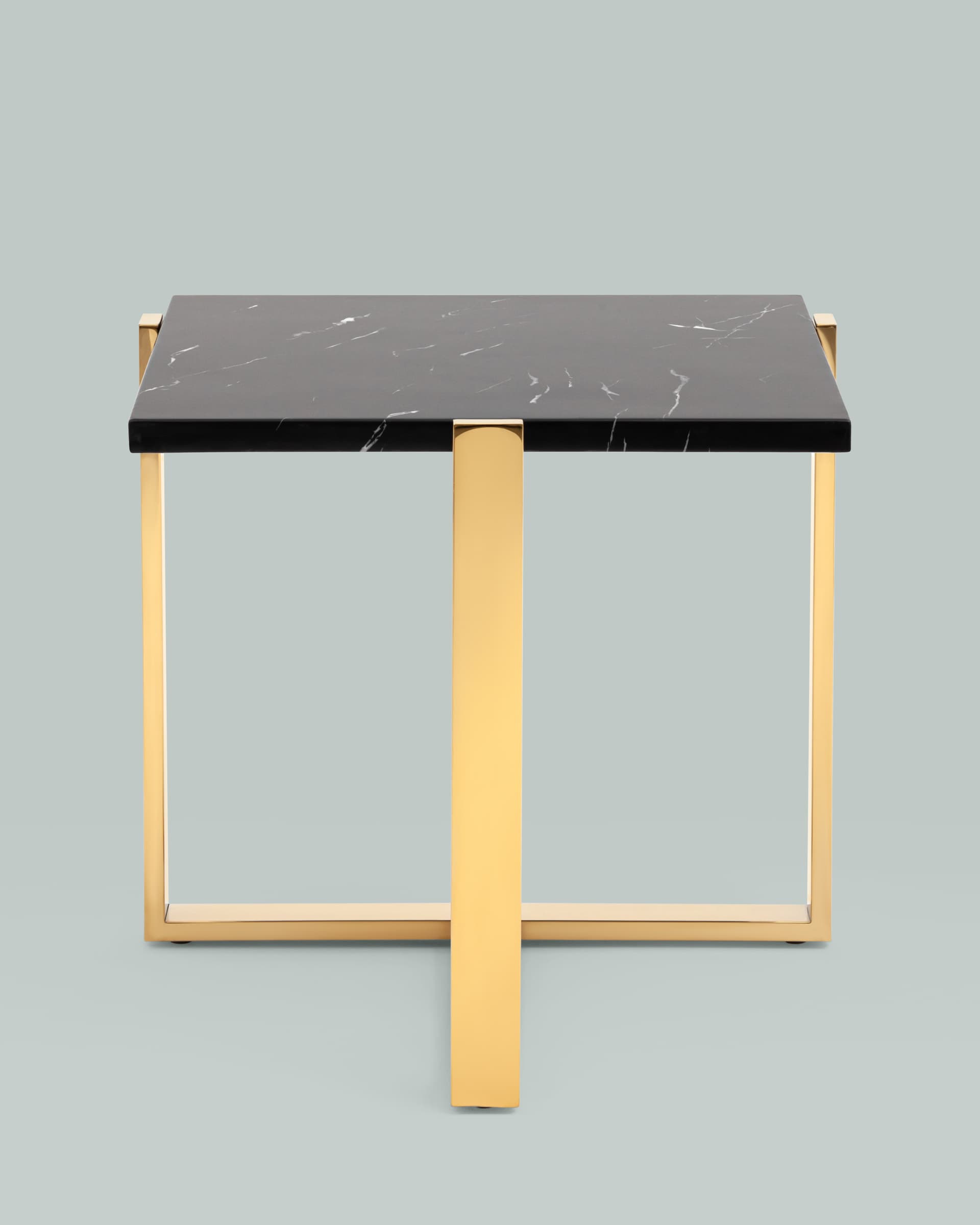 Журнальный столик Тоби 61*61 черный мрамор каркас нержавеющая сталь золото