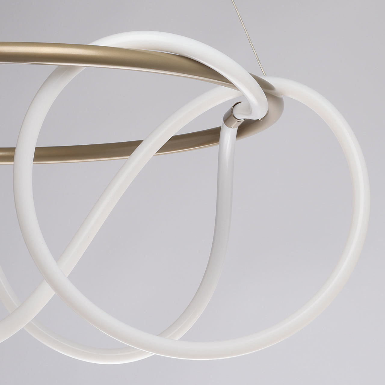 Металлическое основание светильника окрашено в цвет перламутрового золота, матировано. Гибкий плафон выполнен из белого матового силикона.
