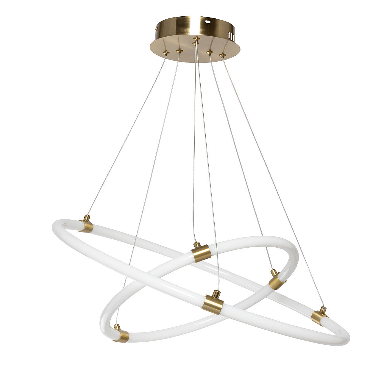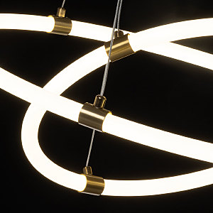 Актуальный цвет латуни и качественная гальваника сохраняют привлекательный вид люстры на долгие годы. Благодаря геометрии круга люстра становится интересным элементом интерьера. Светодиодные источники света экономичны и безопасны. Возможность регулировать комфортную высоту.