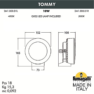 Допускается отличие страны-изготовителя, указанной в характеристиках. Линии производства могут находиться в нескольких государствах. Это не влияет на качество изготовления товара: все заводы данного бренда работают по общим стандартам, а готовые изделия проходят соответствующий контроль.Италия Коллекция Tommy ЦветЦвет арматуры Черный Цвет Черный Материал арматуры Сверхпрочный полимер RESIN Цвет плафона матовый Материал плафона Полиметилметакрилат (оргстекло) РазмерыВысота (мм) 165 Диаметр (мм) 152 Ширина (мм) 152 Глубина (мм) 100 ЭлектрикаКоличество ламп (шт) 1 Цоколь GX53 Тип лампы Светодиодная Мощность лампы (Вт) 10 Напряжение (В) 220 Дополнительная информацияСтепень защиты (IP) IP66 Вес (Кг) 0,8 -