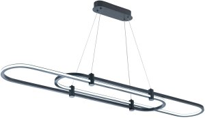 Люстра подвесная вытянутой формы из коллекции Tooring имеет арматуру из сплава алюминия, обработанную по технологии брашинг, и анодированную в черный цвет. Светодиодные источники света закрыты белым матовым акрилом. Все модели коллекции Tooring комплектуются пультом дистанционного управления 2,4G и драйвером высокого качества с европейским стандартом T?V. Пульт дистанционного управления обеспечивает переключение трех режимов световой температуры и диммирование.