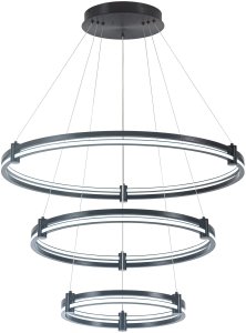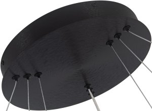 Люстра подвесная из коллекции Tooring имеет арматуру из сплава алюминия, обработанную по технологии брашинг, и анодированную в черный цвет. Светодиодные источники света закрыты белым матовым акрилом. Все модели коллекции Tooring комплектуются пультом дистанционного управления 2,4G и драйвером высокого качества с европейским стандартом T?V. Пульт дистанционного управления обеспечивает переключение трех режимов световой температуры и диммирование.