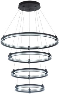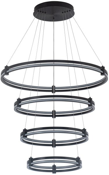 Люстра подвесная из коллекции Tooring имеет арматуру из сплава алюминия, обработанную по технологии брашинг, и анодированную в черный цвет. Светодиодные источники света закрыты белым матовым акрилом. Все модели коллекции Tooring комплектуются пультом дистанционного управления 2,4G и драйвером высокого качества с европейским стандартом T?V. Пульт дистанционного управления обеспечивает переключение трех режимов световой температуры и диммирование.