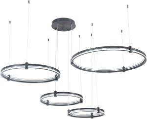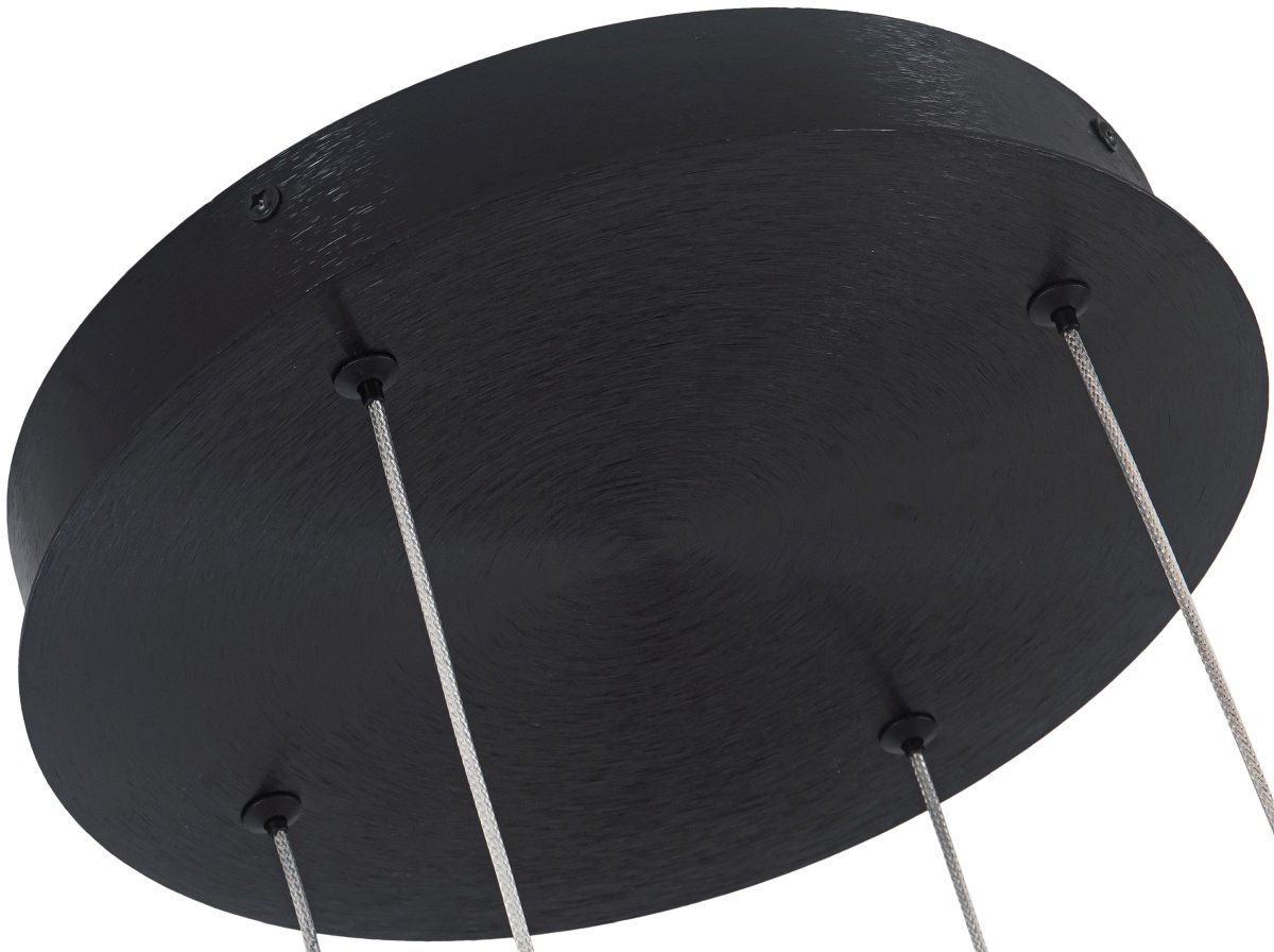 Люстра подвесная из коллекции Tooring имеет арматуру из сплава алюминия, обработанную по технологии брашинг, и анодированную в черный цвет. Светодиодные источники света закрыты белым матовым акрилом. Все модели коллекции Tooring комплектуются пультом дистанционного управления 2,4G и драйвером высокого качества с европейским стандартом T?V. Пульт дистанционного управления обеспечивает переключение трех режимов световой температуры и диммирование.