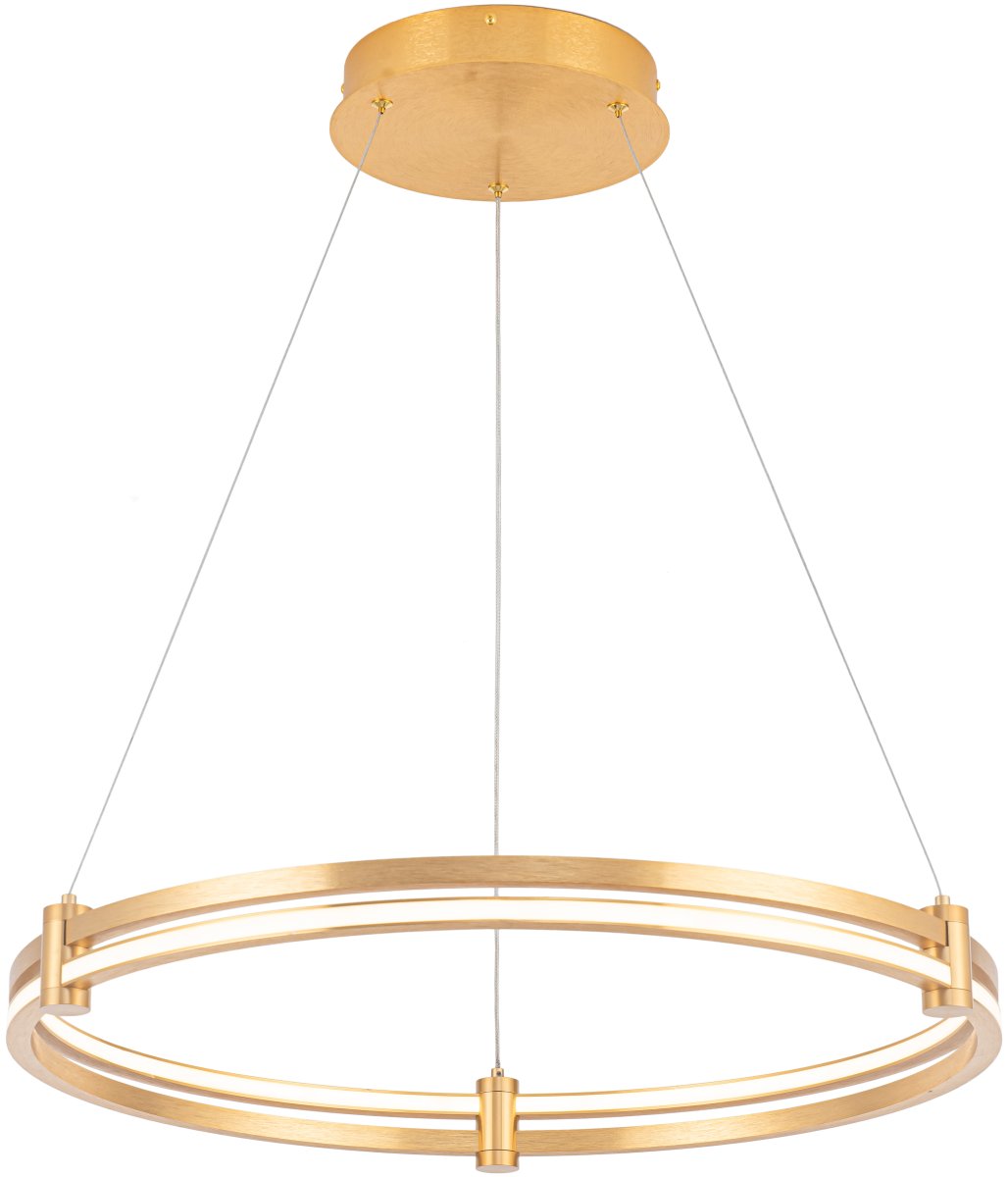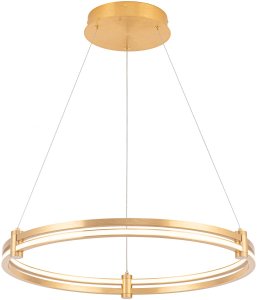 Люстра подвесная из коллекции Tooring имеет арматуру из сплава алюминия, обработанную по технологии брашинг, и анодированную в цвет латуни. Светодиодные источники света закрыты белым матовым акрилом. Все модели коллекции Tooring комплектуются пультом дистанционного управления 2,4G и драйвером высокого качествас европейским стандартом T?V. Пульт дистанционного управления обеспечивает переключение трех режимов световой температуры и диммирование.