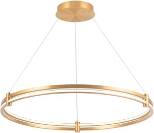 Люстра подвесная из коллекции Tooring имеет арматуру из сплава алюминия, обработанную по технологии брашинг, и анодированную в цвет латуни. Светодиодные источники света закрыты белым матовым акрилом. Все модели коллекции Tooring комплектуются пультом дистанционного управления 2,4G и драйвером высокого качества с европейским стандартом T?V. Пульт дистанционного управления обеспечивает переключение трех режимов световой температуры и диммирование.