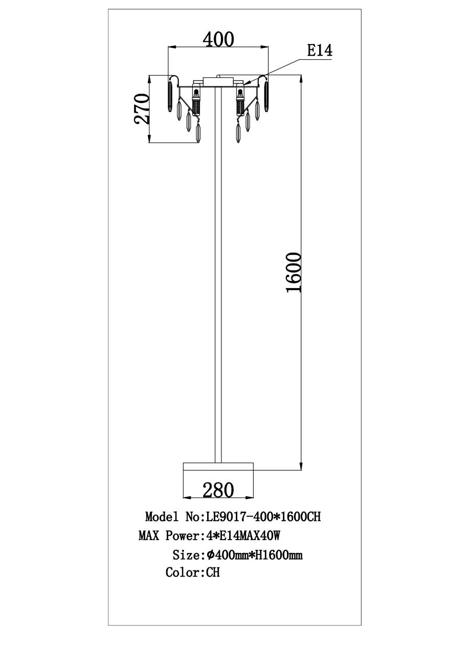Допускается отличие страны-изготовителя, указанной в характеристиках. Линии производства могут находиться в нескольких государствах. Это не влияет на качество изготовления товара: все заводы данного бренда работают по общим стандартам, а готовые изделия проходят соответствующий контроль.Россия Коллекция Catherine ЦветЦвет арматуры Хром Цвет Хром Материал арматуры Металл гальванизированный Цвет плафона прозрачный Материал плафона Хрусталь РазмерыВысота (мм) 1600 Длина (мм) 56 Диаметр (мм) 400 ЭлектрикаКоличество ламп (шт) 4 Цоколь E14 Дополнительная информацияВес (Кг) 11.9 -