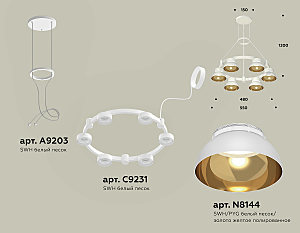 Допускается отличие страны-изготовителя, указанной в характеристиках. Линии производства могут находиться в нескольких государствах. Это не влияет на качество изготовления товара: все заводы данного бренда работают по общим стандартам, а готовые изделия проходят соответствующий контроль.Россия Коллекция Traditional DIY ЦветЦвет арматуры Прозрачный, Белый песок, золото желтое полированное Цвет Белый Материал арматуры Металл, Акрил РазмерыВысота (мм) 1700 Диаметр (мм) 550 Высота минимальная (мм) 45,5 Ширина (мм) 550 ЭлектрикаКоличество ламп (шт) 6 Цоколь GX53 Тип лампы Светодиодная Мощность лампы (Вт) 12 Напряжение (В) 220 Дополнительная информацияСпособ крепления Планка Степень защиты (IP) IP20 Тип подвеса На тросах -