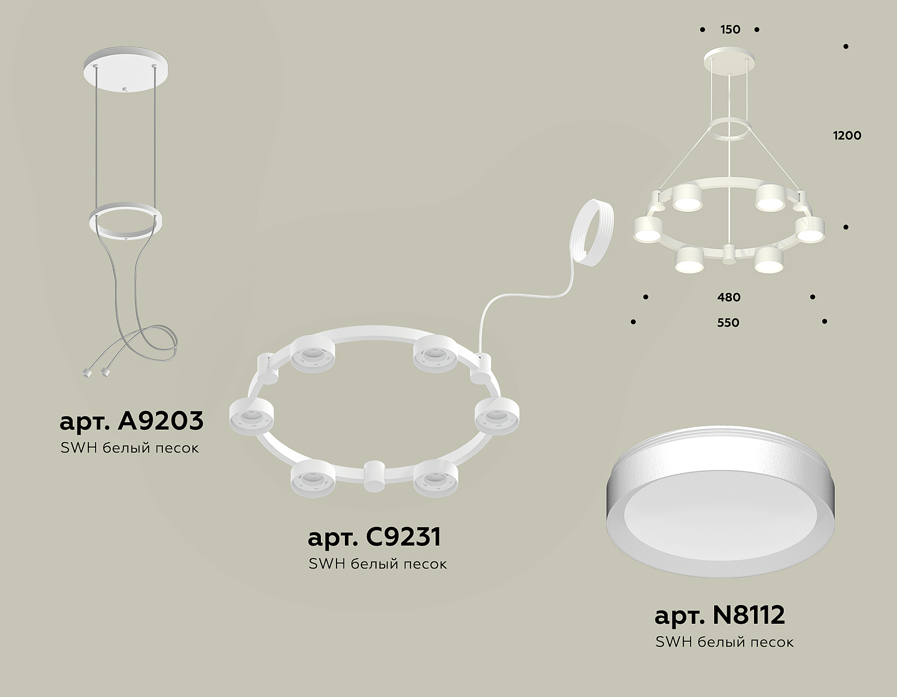 Допускается отличие страны-изготовителя, указанной в характеристиках. Линии производства могут находиться в нескольких государствах. Это не влияет на качество изготовления товара: все заводы данного бренда работают по общим стандартам, а готовые изделия проходят соответствующий контроль.Россия Коллекция Traditional DIY ЦветЦвет арматуры Белый песок Цвет Белый Материал арматуры Металл РазмерыВысота (мм) 1700 Диаметр (мм) 550 Высота минимальная (мм) 45,5 Ширина (мм) 550 ЭлектрикаКоличество ламп (шт) 6 Цоколь GX53 Тип лампы Светодиодная Мощность лампы (Вт) 12 Напряжение (В) 220 Дополнительная информацияСпособ крепления Планка Степень защиты (IP) IP20 Тип подвеса На тросах -