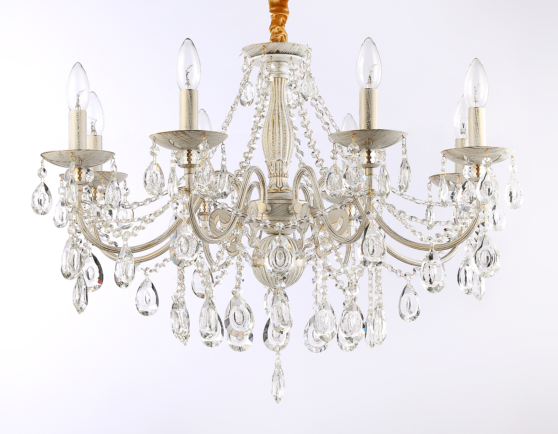 Допускается отличие страны-изготовителя, указанной в характеристиках. Линии производства могут находиться в нескольких государствах. Это не влияет на качество изготовления товара: все заводы данного бренда работают по общим стандартам, а готовые изделия проходят соответствующий контроль.Россия Коллекция Traditional ЦветЦвет арматуры Золото, Белый Цвет Белый Материал арматуры Металл Цвет декора прозрачный Материал декора Хрусталь РазмерыВысота (мм) 955 Диаметр (мм) 715 Высота минимальная (мм) 555 ЭлектрикаКоличество ламп (шт) 8 Цоколь E14 Лампочки в комплекте Нет в комплекте Напряжение (В) 220 Площадь освещения 23 Дополнительная информацияСпособ крепления Крюк Степень защиты (IP) IP20 Тип подвеса На цепи -
