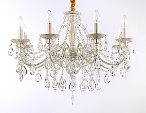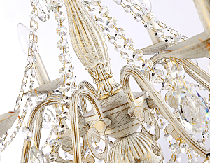 Подвесная классическая люстра из коллекции TRADITIONAL. Модель TR4945 выполнена из металлического корпуса белого и золотого цвета и декорирована превосходным прозрачным хрусталем. Для данной модели подойдут лампы с цоколем Е14. Люстра будет прекрасным дополнением в любом помещении.