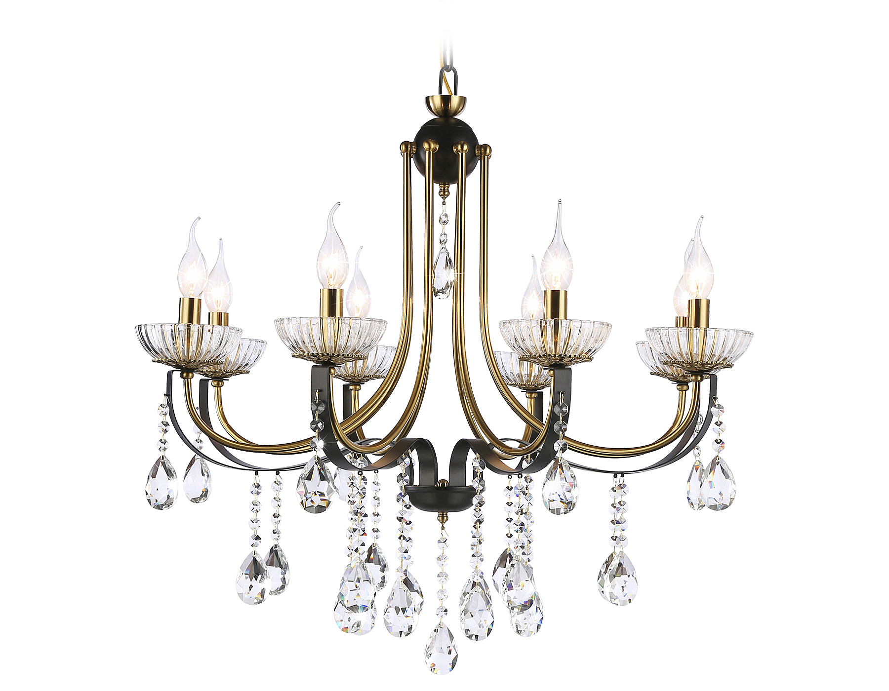 Подвесная люстра из коллекции TRADITIONAL. Модель TR4953 представлена в классическом стиле. Люстра выполнена из прозрачного хрусталя и металлического каркаса черного и золотого цвета. Для данной модели подойдут лампы с цоколем E14. Люстра будет прекрасным дополнением в любом помещении.