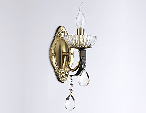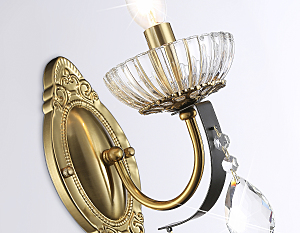 Настенный светильник из коллекции TRADITIONAL. Модель TR4954 представлена в классическом стиле и выполнена из прозрачного хрусталя и металлического корпуса черного и золотого цвета. Для данной модели подойдут лампы с цоколем Е14. Светильник будет прекрасным дополнением в любом помещении.
