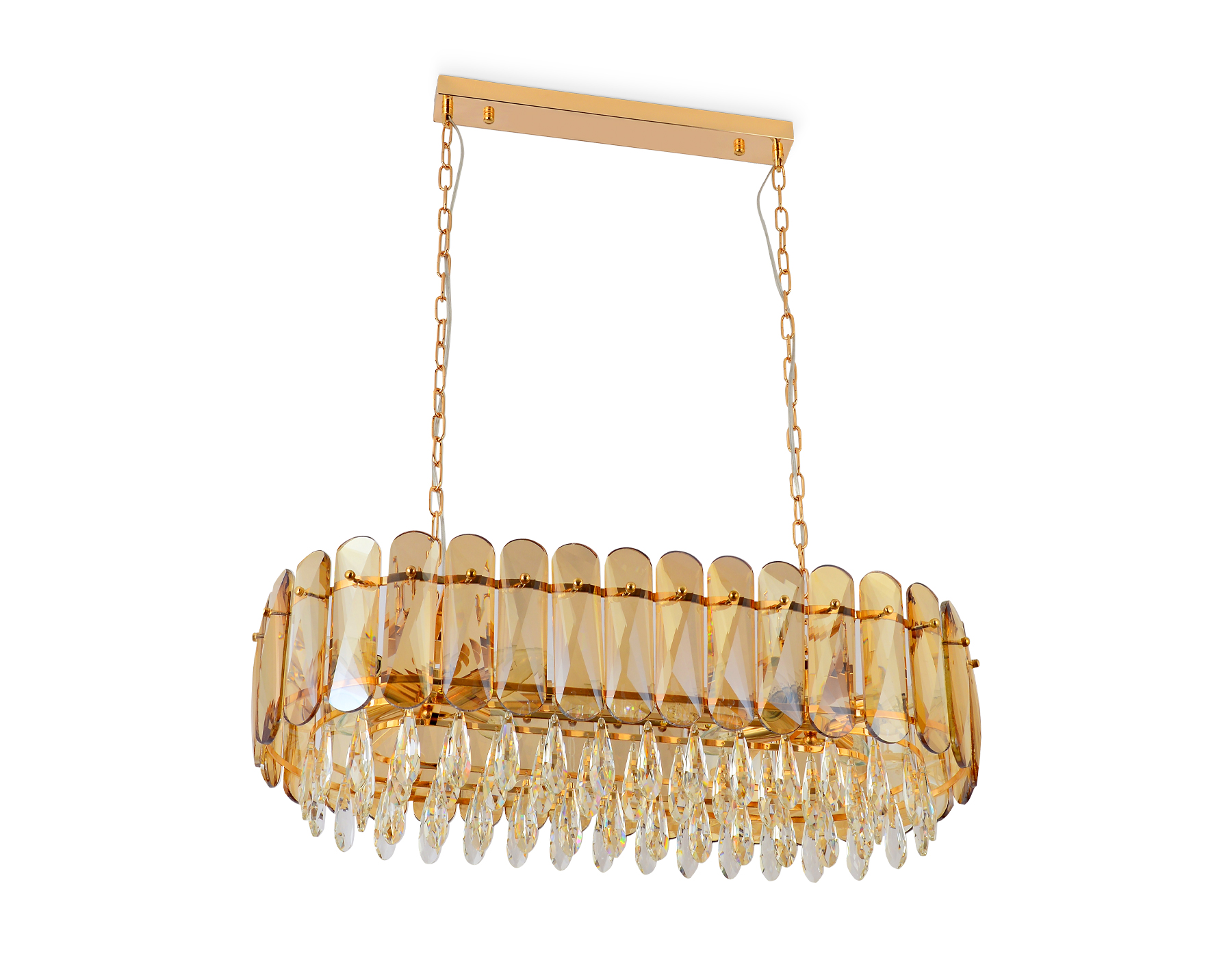 Допускается отличие страны-изготовителя, указанной в характеристиках. Линии производства могут находиться в нескольких государствах. Это не влияет на качество изготовления товара: все заводы данного бренда работают по общим стандартам, а готовые изделия проходят соответствующий контроль.Россия Коллекция Traditional ЦветЦвет арматуры Золото Цвет Золото Материал арматуры Металл Цвет плафона прозрачный, Янтарь Материал плафона Хрусталь РазмерыВысота (мм) 950 Длина (мм) 800 Высота минимальная (мм) 250 Ширина (мм) 360 ЭлектрикаКоличество ламп (шт) 8 Цоколь E14 Мощность лампы (Вт) 40 Общая мощность (Вт) 320 Напряжение (В) 220 Площадь освещения 24-34 Дополнительная информацияСпособ крепления Планка Степень защиты (IP) IP20 Тип подвеса На цепи -