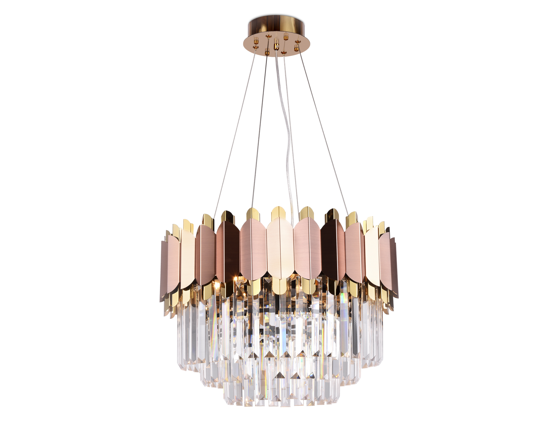 Допускается отличие страны-изготовителя, указанной в характеристиках. Линии производства могут находиться в нескольких государствах. Это не влияет на качество изготовления товара: все заводы данного бренда работают по общим стандартам, а готовые изделия проходят соответствующий контроль.Россия Коллекция Traditional ЦветЦвет арматуры Золото, розовое золото Цвет Золото Материал арматуры Металл Цвет декора прозрачный Материал декора Хрусталь РазмерыВысота (мм) 880 Диаметр (мм) 500 Высота минимальная (мм) 340 Ширина (мм) 500 ЭлектрикаКоличество ламп (шт) 8 Цоколь E14 Мощность лампы (Вт) 40 Напряжение (В) 220 Площадь освещения 18-29 Дополнительная информацияСпособ крепления Планка Степень защиты (IP) IP20 Тип подвеса На тросах -
