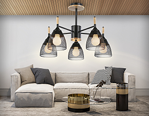 Допускается отличие страны-изготовителя, указанной в характеристиках. Линии производства могут находиться в нескольких государствах. Это не влияет на качество изготовления товара: все заводы данного бренда работают по общим стандартам, а готовые изделия проходят соответствующий контроль.Россия Коллекция Traditional ЦветЦвет арматуры Черный Цвет Белый Материал арматуры Металл Цвет плафона Черный Материал плафона Металл РазмерыВысота (мм) 385 Диаметр (мм) 600 Ширина (мм) 600 ЭлектрикаКоличество ламп (шт) 5 Цоколь E27 Мощность лампы (Вт) 40 Напряжение (В) 220 Площадь освещения 14 Дополнительная информацияСпособ крепления Планка Степень защиты (IP) IP20 -