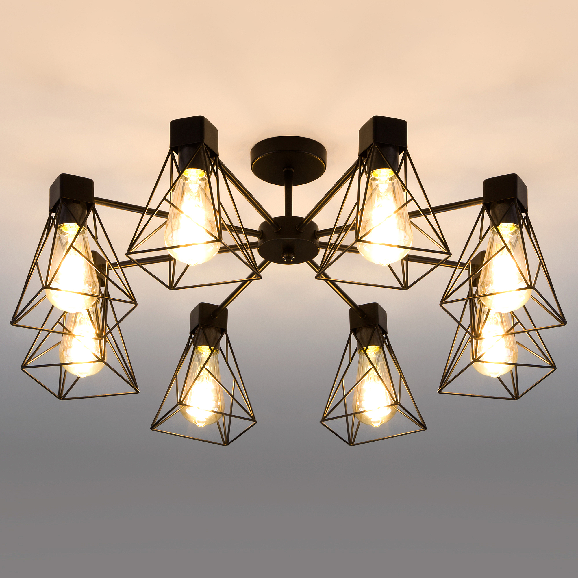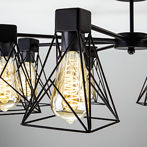 Допускается отличие страны-изготовителя, указанной в характеристиках. Линии производства могут находиться в нескольких государствах. Это не влияет на качество изготовления товара: все заводы данного бренда работают по общим стандартам, а готовые изделия проходят соответствующий контроль.Китай Коллекция Trappola ЦветЦвет арматуры Черный Цвет Черный Материал арматуры Металл Цвет плафона Черный Материал плафона Металл РазмерыВысота (мм) 330 Длина (мм) 700 Ширина (мм) 700 ЭлектрикаКоличество ламп (шт) 8 Цоколь E27 Лампочки в комплекте Нет в комплекте Мощность лампы (Вт) 60 Напряжение (В) 220 Площадь освещения 36 Дополнительная информацияСпособ крепления Планка Степень защиты (IP) IP20 -