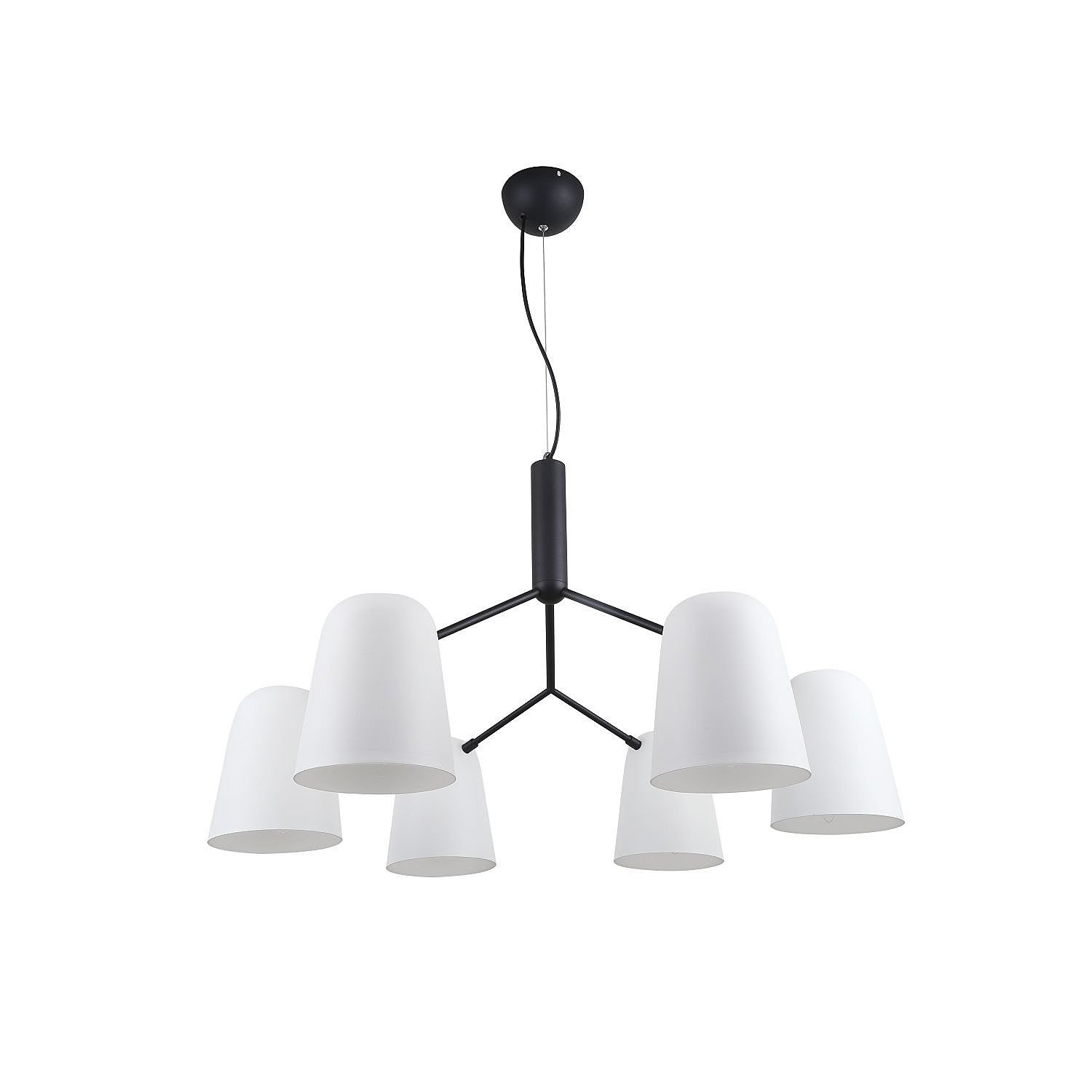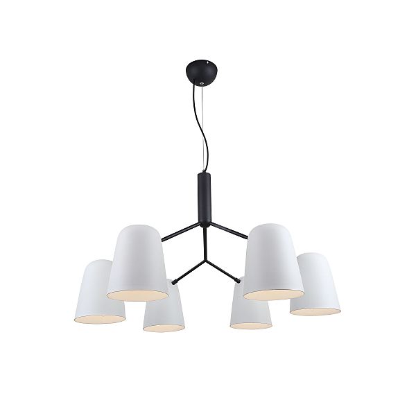Каркас черного цвета, металлические плафоны белого цвета
