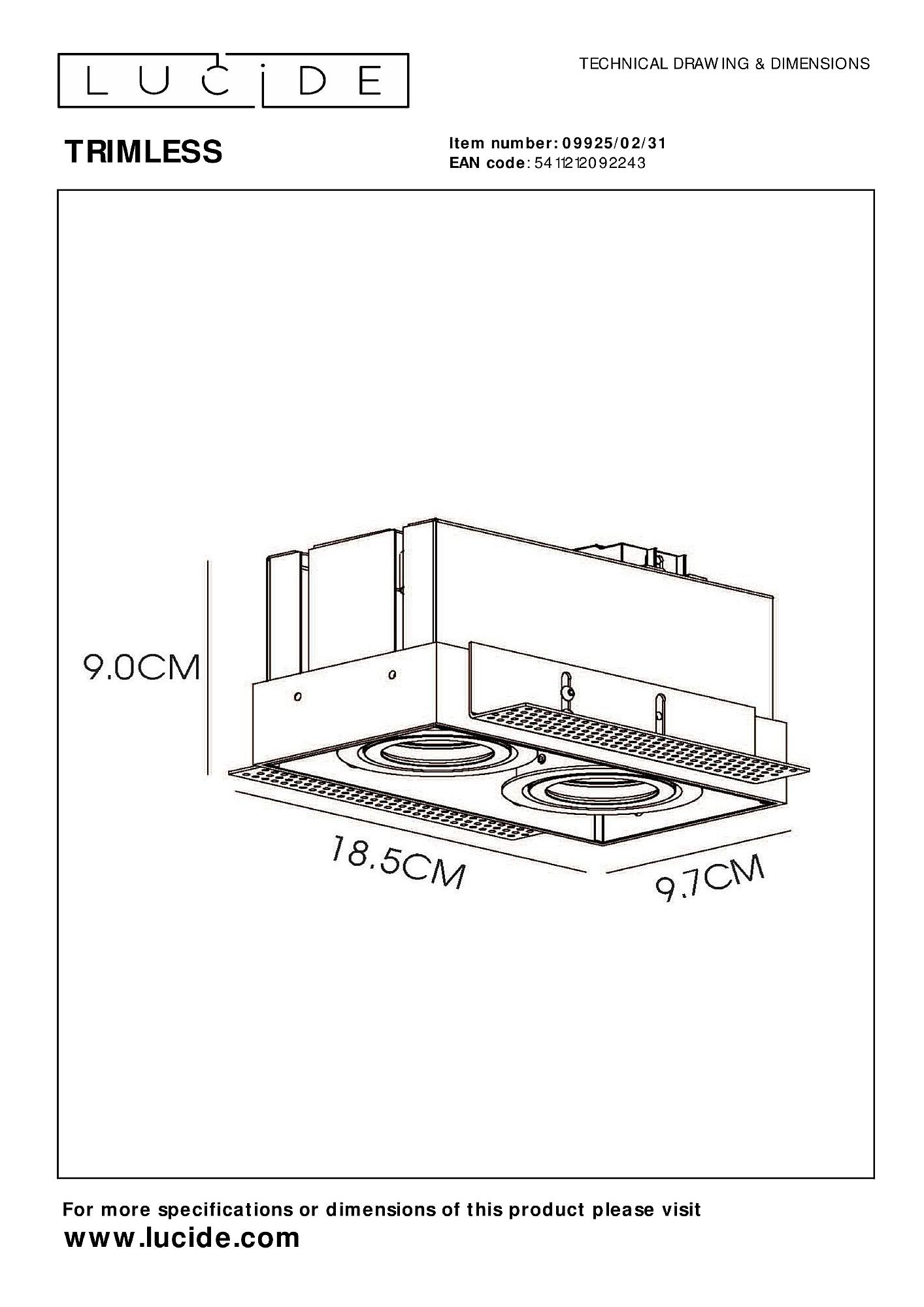 Допускается отличие страны-изготовителя, указанной в характеристиках. Линии производства могут находиться в нескольких государствах. Это не влияет на качество изготовления товара: все заводы данного бренда работают по общим стандартам, а готовые изделия проходят соответствующий контроль.Бельгия Коллекция Trimless ЦветЦвет арматуры Белый Цвет Белый Материал арматуры Алюминий РазмерыВысота (мм) 90 Длина (мм) 185 Ширина (мм) 157 ЭлектрикаКоличество ламп (шт) 2 Цоколь GU10 Лампочки в комплекте Нет в комплекте Мощность лампы (Вт) 50 Дополнительная информацияСтепень защиты (IP) IP20 Диммирование Да Техническая оссобеность Поворотный -