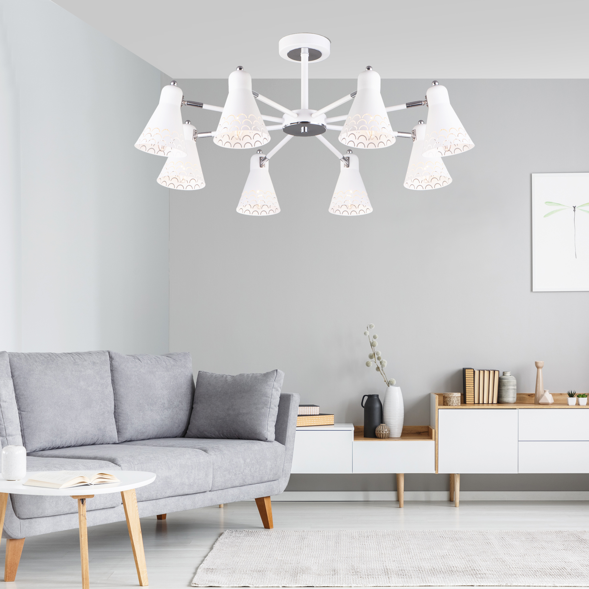 Допускается отличие страны-изготовителя, указанной в характеристиках. Линии производства могут находиться в нескольких государствах. Это не влияет на качество изготовления товара: все заводы данного бренда работают по общим стандартам, а готовые изделия проходят соответствующий контроль.Китай Коллекция Trina ЦветЦвет арматуры Белый Цвет Белый Материал арматуры Металл Цвет плафона Белый РазмерыВысота (мм) 320 Длина (мм) 640 Ширина (мм) 640 ЭлектрикаКоличество ламп (шт) 6 Цоколь E14 Мощность лампы (Вт) 60 Напряжение (В) 220 Площадь освещения 27 Дополнительная информацияСпособ крепления Планка Степень защиты (IP) IP20 -