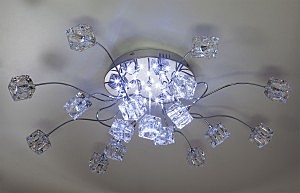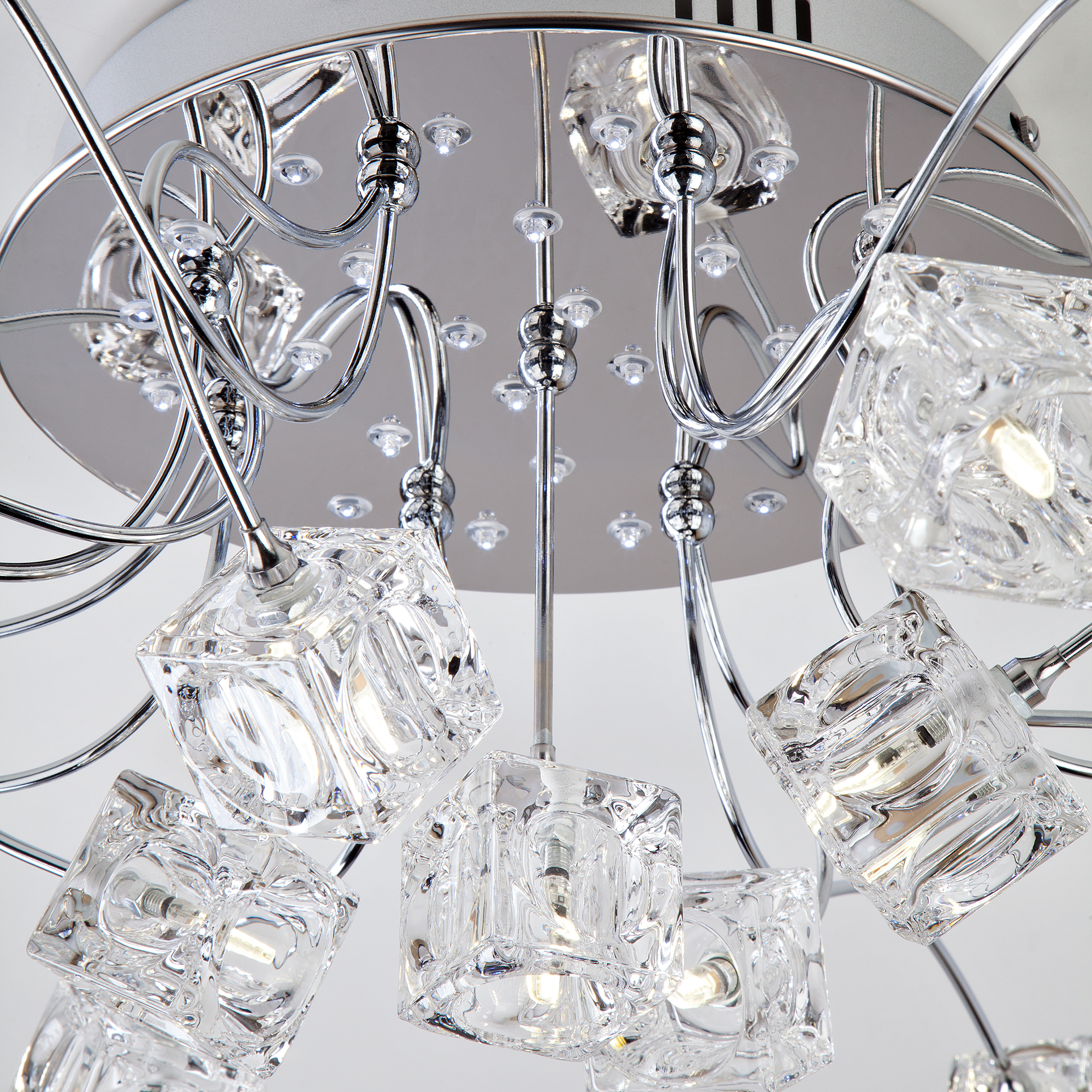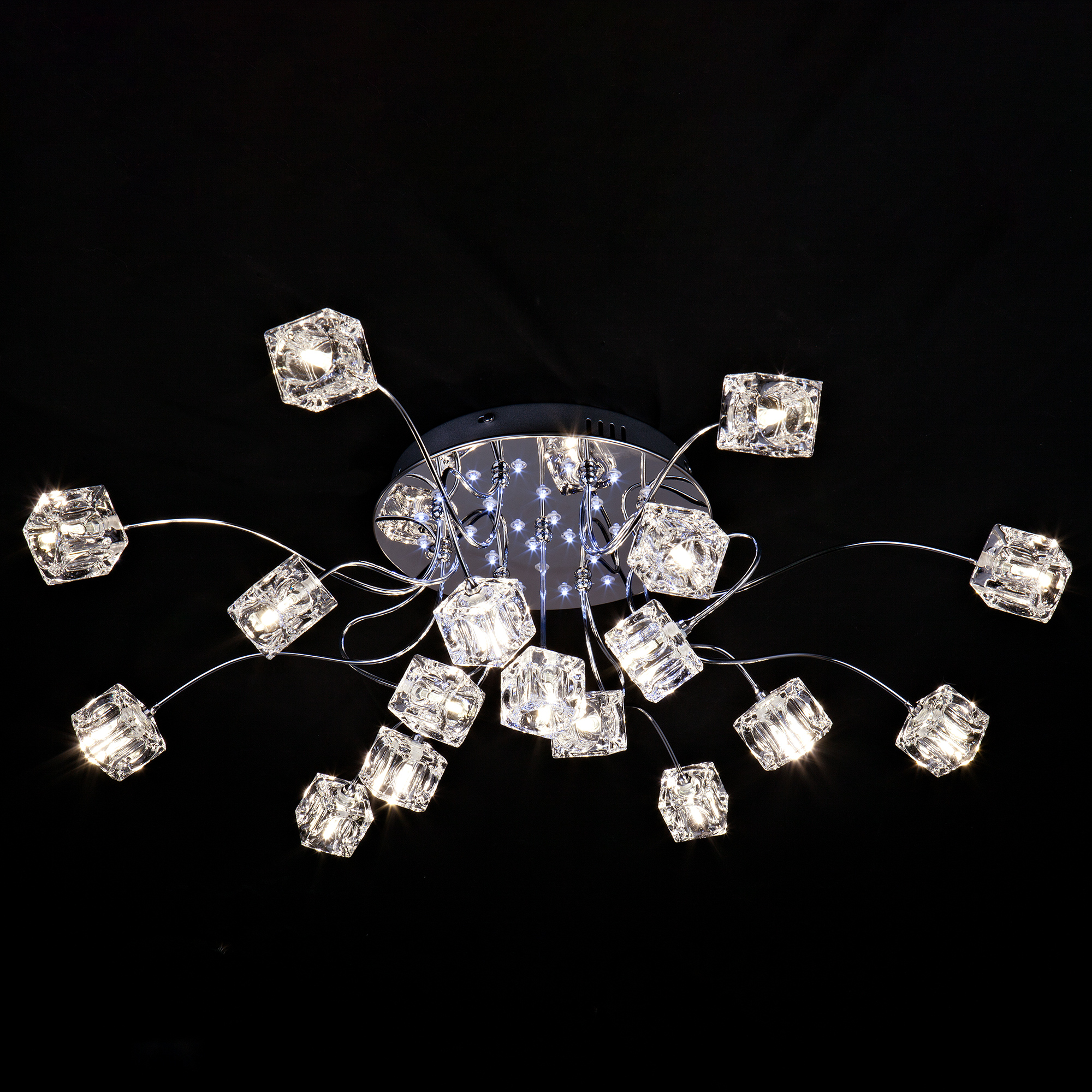 Допускается отличие страны-изготовителя, указанной в характеристиках. Линии производства могут находиться в нескольких государствах. Это не влияет на качество изготовления товара: все заводы данного бренда работают по общим стандартам, а готовые изделия проходят соответствующий контроль.Китай Коллекция Trinity ЦветЦвет арматуры Хром Цвет Хром Материал арматуры Металл Цвет плафона прозрачный Материал плафона Стекло РазмерыВысота (мм) 210 Длина (мм) 820 Ширина (мм) 820 ЭлектрикаКоличество ламп (шт) 17 Цоколь G4 Мощность лампы (Вт) 3 Дополнительная информацияТип управления Пульт ДУ -
