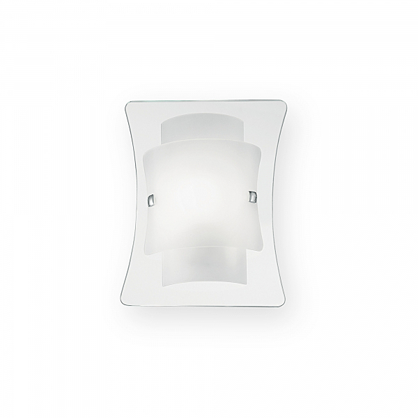 Рассеиватель составлен из трёхстёкл. Одно прозрачное и ровное,а два остальных отшлифиваныкислотой и изогнуты в верхней части.Закрепляющие плафон элементы изхромированного металла.