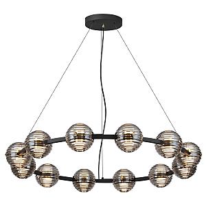 Линия Troni - роскошные кольца со стеклянными плафонами из двух полусфер. LED элемент красиво рассеивает свет сквозь рифленую текстуру дымчатого стекла вверх и вниз. Из колец диаметром 630, 930 и 1130 мм можно создавать композиции на 2 и 3 кольца. Модель овальной формы отлично подойдет для размещения над обеденной или рабочей зоной. Одиночный подвес и бра дополняют линейку светильников линии Troni.