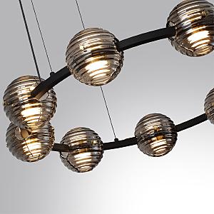 Линия Troni - роскошные кольца со стеклянными плафонами из двух полусфер. LED элемент красиво рассеивает свет сквозь рифленую текстуру дымчатого стекла вверх и вниз. Из колец диаметром 630, 930 и 1130 мм можно создавать композиции на 2 и 3 кольца. Модель овальной формы отлично подойдет для размещения над обеденной или рабочей зоной. Одиночный подвес и бра дополняют линейку светильников линии Troni.