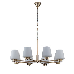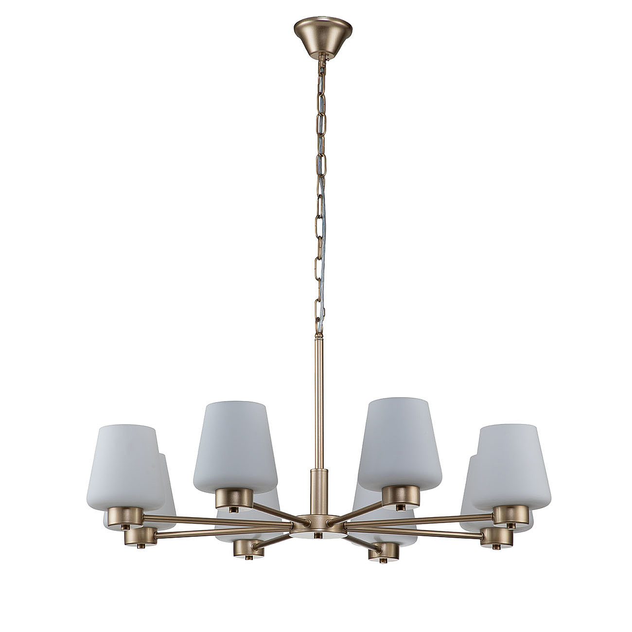 Допускается отличие страны-изготовителя, указанной в характеристиках. Линии производства могут находиться в нескольких государствах. Это не влияет на качество изготовления товара: все заводы данного бренда работают по общим стандартам, а готовые изделия проходят соответствующий контроль.Великобритания Коллекция Tulip ЦветЦвет арматуры Золото Цвет Золото Материал арматуры Металл Цвет плафона Матовый белый Материал плафона Стекло РазмерыВысота (мм) 1255 Длина (мм) 815 Высота минимальная (мм) 455 Ширина (мм) 815 Диаметр абажура-плафона 140 Высота абажура-плафона 145 ЭлектрикаКоличество ламп (шт) 8 Цоколь E27 Мощность лампы (Вт) 60 Напряжение (В) 220 Площадь освещения 30 Дополнительная информацияСпособ крепления Крюк Степень защиты (IP) IP20 Вес (Кг) 4.18 Тип подвеса На цепи -