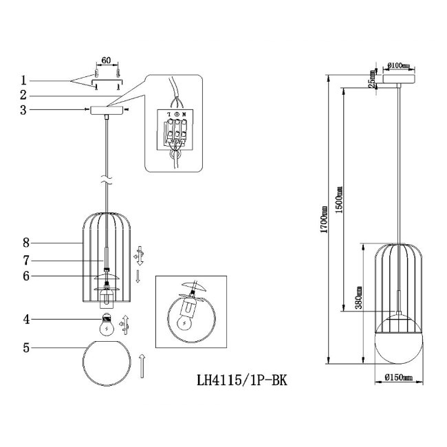 Производитель Lumien Hall Артикул LH4115/1P-BK Страна