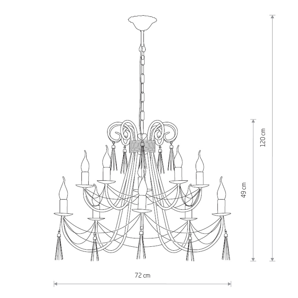 Допускается отличие страны-изготовителя, указанной в характеристиках. Линии производства могут находиться в нескольких государствах. Это не влияет на качество изготовления товара: все заводы данного бренда работают по общим стандартам, а готовые изделия проходят соответствующий контроль.Польша Коллекция Twist ЦветЦвет арматуры Белый Цвет Слоновая кость Материал арматуры Сталь Цвет плафона Белый Материал плафона Металл РазмерыВысота (мм) 1200 Диаметр (мм) 720 Высота минимальная (мм) 490 Ширина (мм) 730 ЭлектрикаКоличество ламп (шт) 10 Цоколь E14 Тип лампы Накаливания Мощность лампы (Вт) 60 Общая мощность (Вт) 600 Напряжение (В) 220 Дополнительная информацияСтепень защиты (IP) IP20 Место установки на потолок Вес (Кг) 5,50 Тип подвеса На цепи -