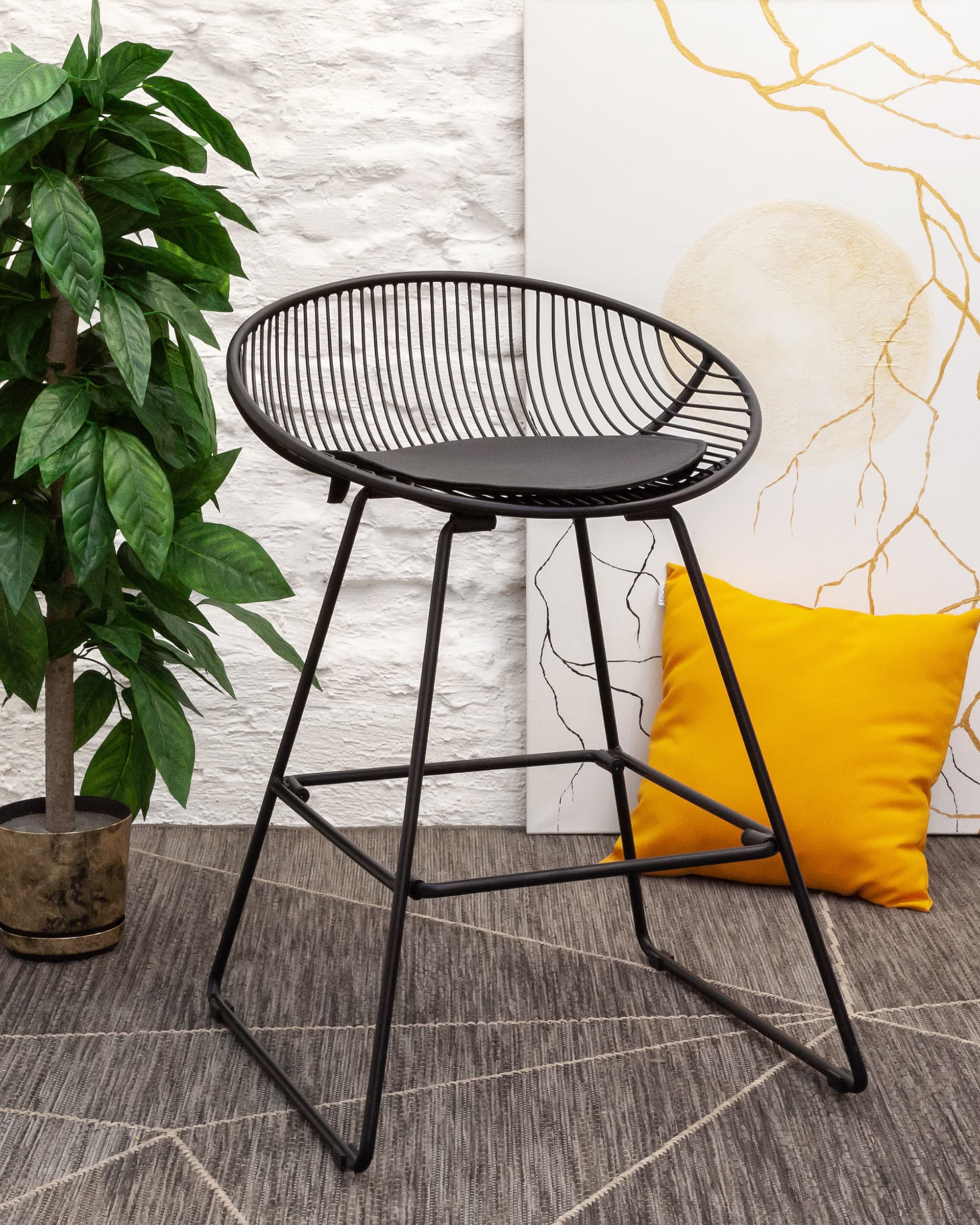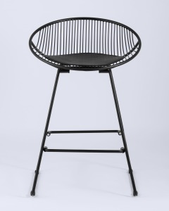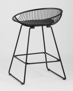 Стул барный UFO черный металл с черной подушкой из экокожи