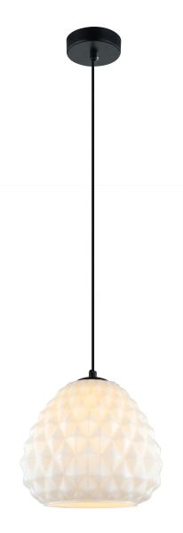 Светильник подвесной из коллекции Unban выполнен из металла, окрашенного в черный цвет, и декорирован фактурным плафоном из белого матового стекла.