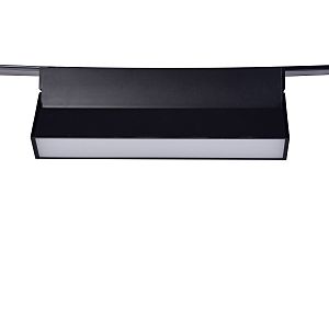 магнитный светильник на шинопровод черного цвета с белым акриловым рассеивателем, поворотный механизм позволяет менять направление светового потока