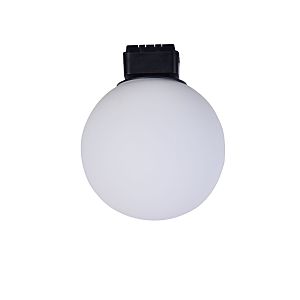магнитный светильник черного цвета на шинопровод с плафоном из белого выдувного стекла